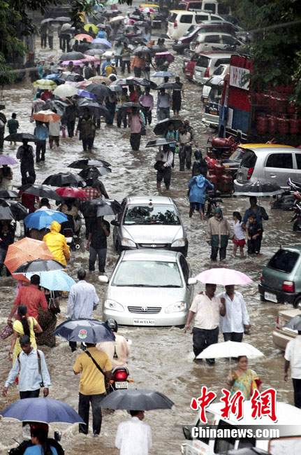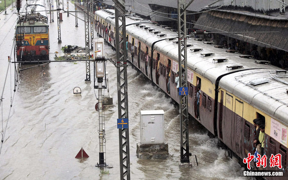 7月3日,印度孟買遭暴雨襲擊。市區(qū)幾乎變成澤國,公路、鐵路等交通受影響嚴(yán)重。