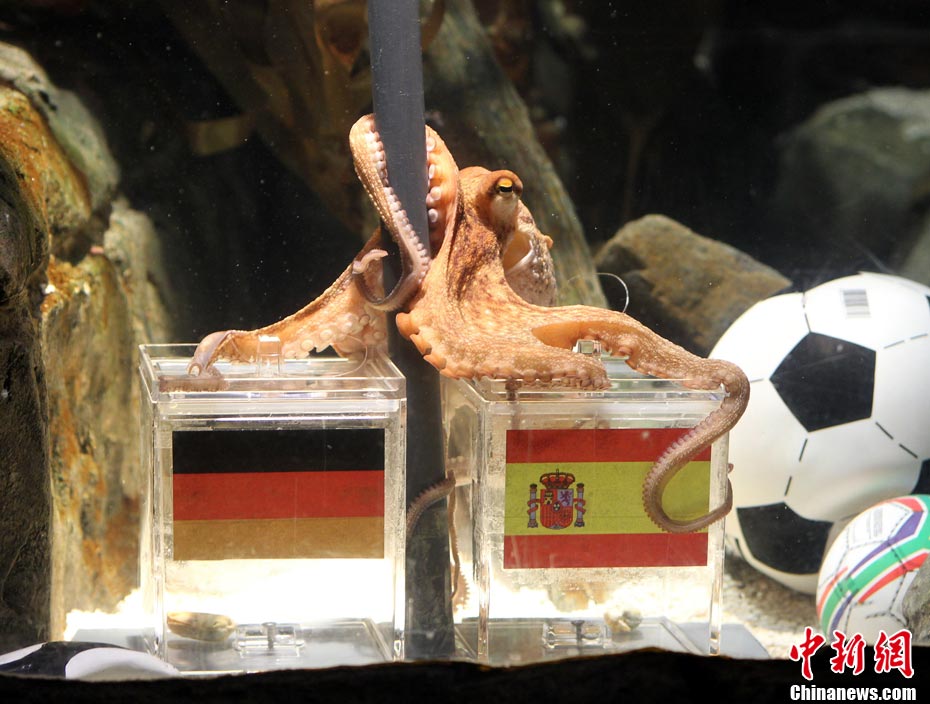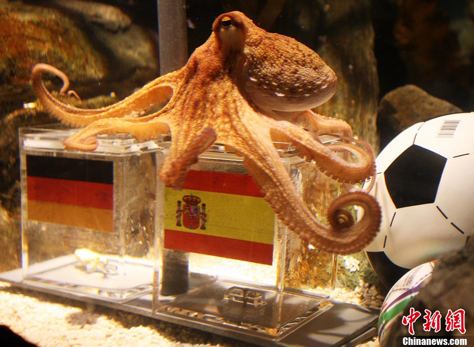 7月6日下午,德國(guó)某水族館的章魚(yú)保羅再次出動(dòng),對(duì)世界杯半決賽德國(guó)與西班牙進(jìn)行了預(yù)測(cè),最終他選擇了西班牙。保羅認(rèn)為歐洲冠軍西班牙將在半決賽擊敗勢(shì)頭強(qiáng)勁的德國(guó)隊(duì)進(jìn)入決賽!秷D片報(bào)》網(wǎng)站的直播員在公布結(jié)果的同時(shí)說(shuō)道:“希望勒夫的小伙子們能扭轉(zhuǎn)局勢(shì),拯救這場(chǎng)半決賽。”或許,對(duì)于德國(guó)球迷來(lái)說(shuō)還有一個(gè)自我安慰的理由:保羅在2008年歐錦賽上預(yù)測(cè)的準(zhǔn)確率是80%,并且唯一錯(cuò)的就是決賽與西班牙之戰(zhàn)。他們或許已經(jīng)開(kāi)始期待:兩年后的世界杯預(yù)測(cè)不要百發(fā)百中,至少在半決賽時(shí)錯(cuò)一次。