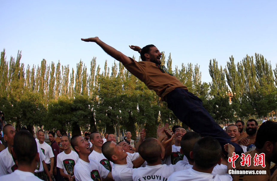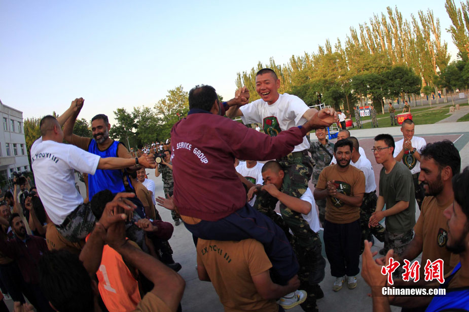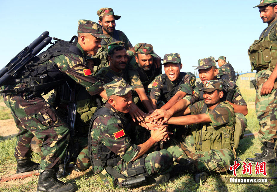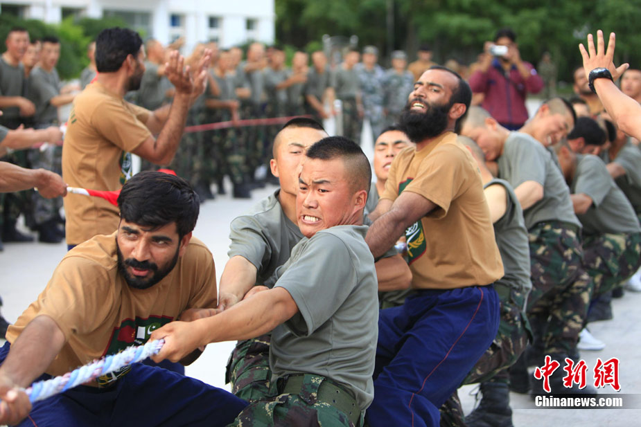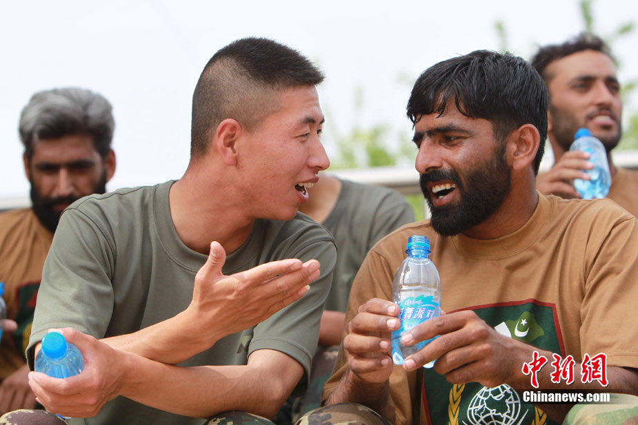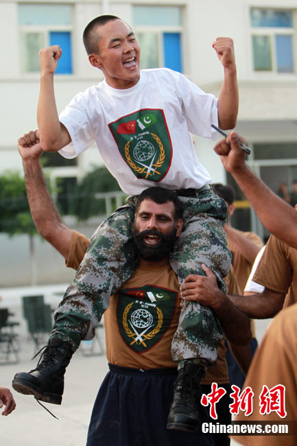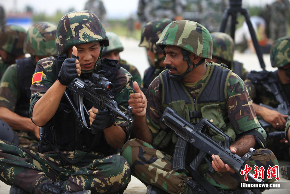 7月初,代號(hào)“友誼—2010”的中國(guó)巴基斯坦反恐聯(lián)合訓(xùn)練在中國(guó)寧夏青銅峽地區(qū)展開,此次訓(xùn)練主要以邊境地區(qū)山地聯(lián)合反恐作戰(zhàn)為課題。開訓(xùn)以來(lái),參訓(xùn)官兵每天不論是訓(xùn)練交流還是開展文體活動(dòng),都混編為A連和B連為單位組織實(shí)施,盡管語(yǔ)言溝通并不暢通,但中巴兩國(guó)士兵在手勢(shì)和眼神的幫助下,依然能夠協(xié)作訓(xùn)練默契自然,完成動(dòng)作標(biāo)準(zhǔn)規(guī)范。中新社發(fā) 杜洋 攝