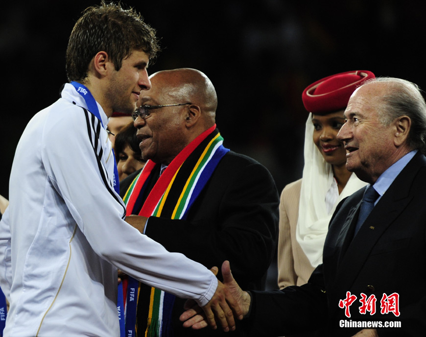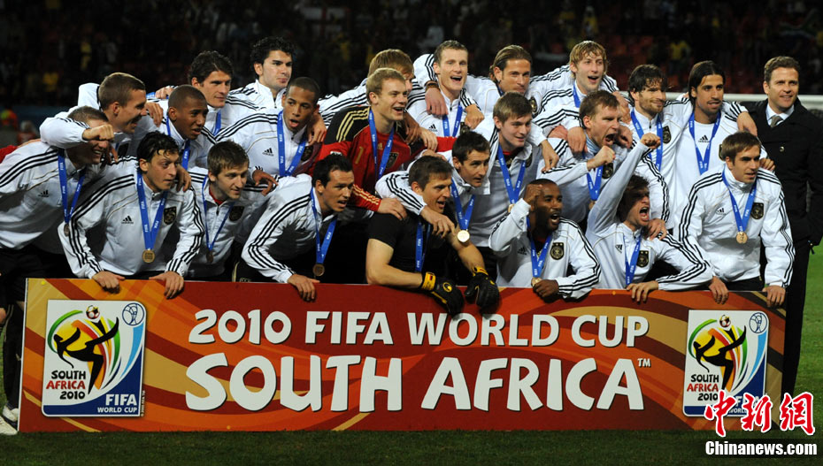 北京時間7月11日凌晨2:30,南非世界杯進行了三四名決賽的爭奪戰(zhàn),由烏拉圭在伊麗莎白港的納爾遜·曼德拉海灣球場迎戰(zhàn)德國隊。最終在一場進球大戰(zhàn)中,德國隊憑借第82分鐘赫迪拉的進球一錘定音,以3-2險勝對手,獲得南非世界杯第三名。