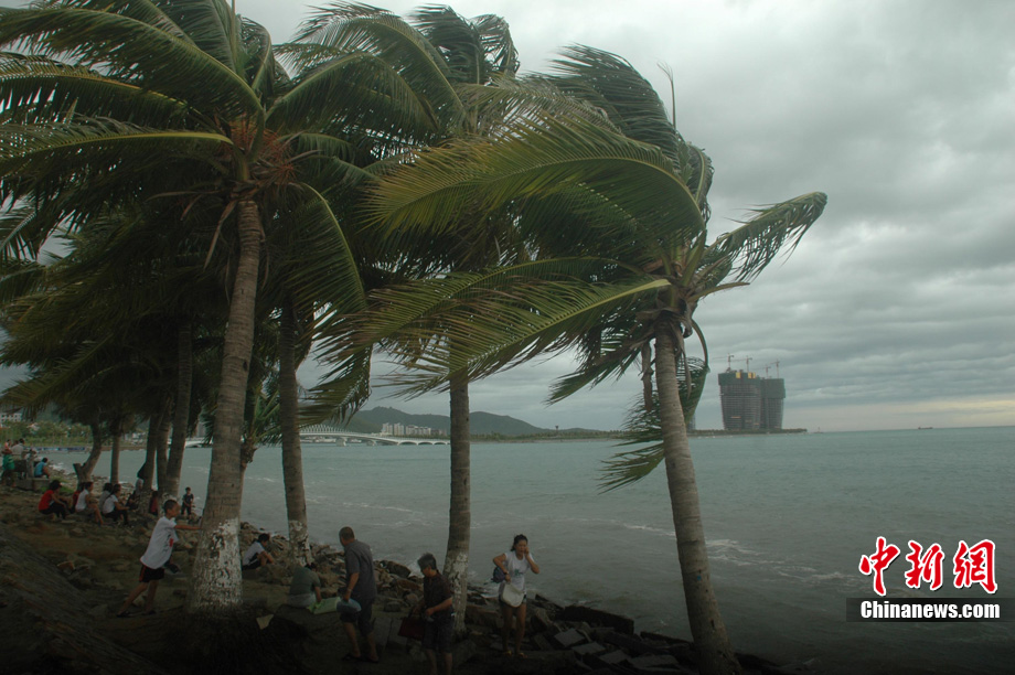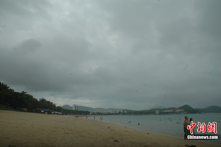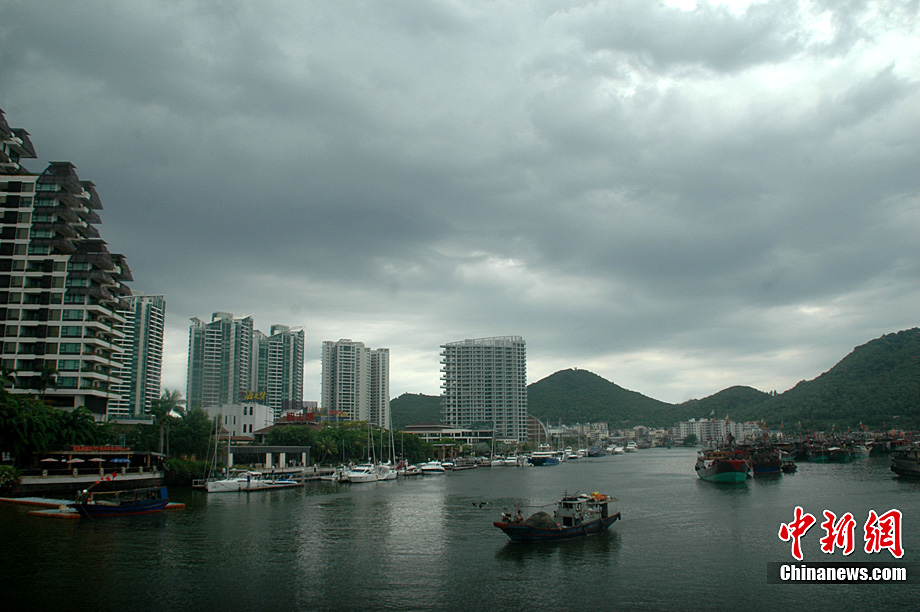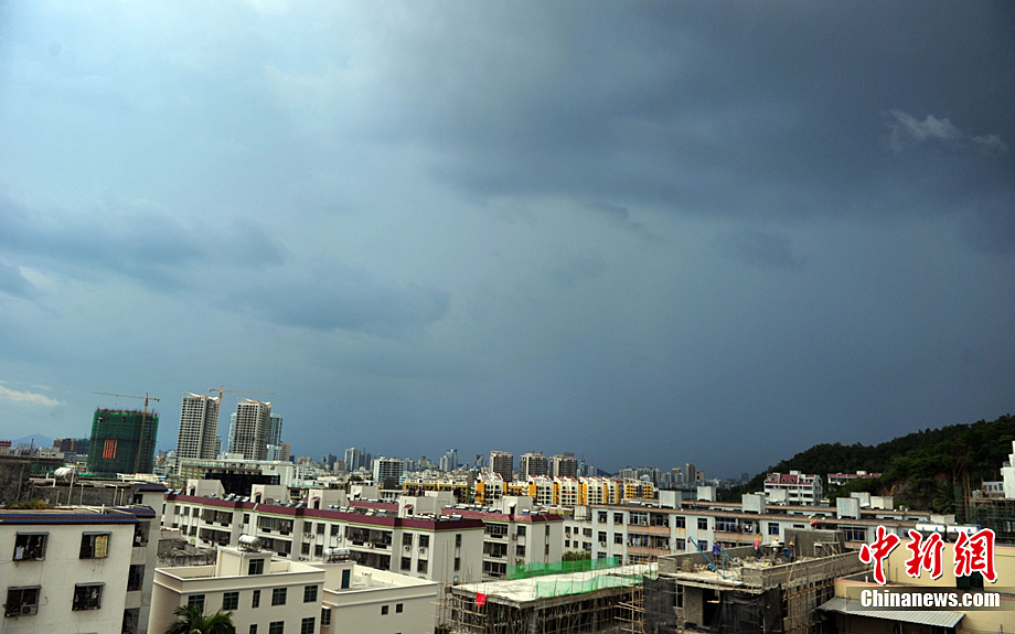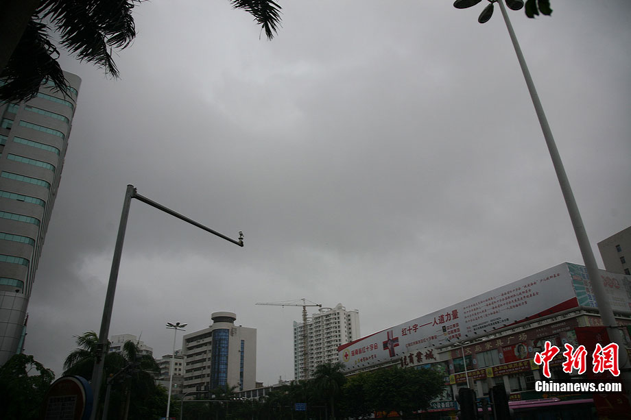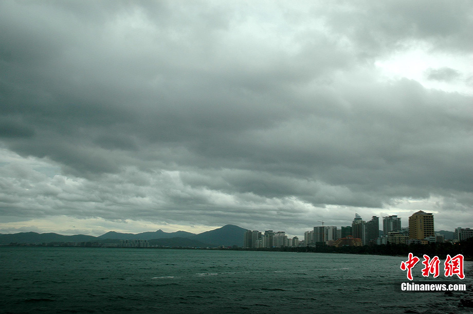 7月15日,海南三亞上空烏云密布。海南省氣象臺當(dāng)日下午17時發(fā)布的天氣預(yù)報稱:今年第2號強(qiáng)熱帶風(fēng)暴"康森",下午2點鐘抵達(dá)距離海南省萬寧市東南方大約440公里的海面,中心附近最大風(fēng)力10級,風(fēng)速達(dá)到28米/秒,7級大風(fēng)范圍半徑150公里,10級大風(fēng)范圍半徑30公里,預(yù)計"康森"將以每小時20公里左右的速度向西北偏西方向移動,于16日下午到夜間在海南省三亞到文昌一帶沿海地區(qū)登陸。中新社發(fā) 尹海明 攝