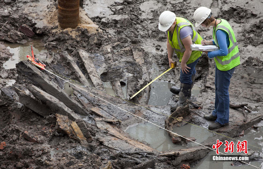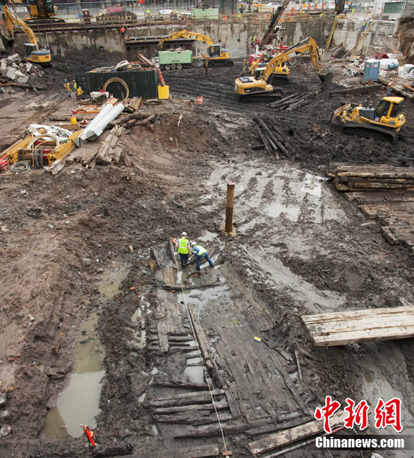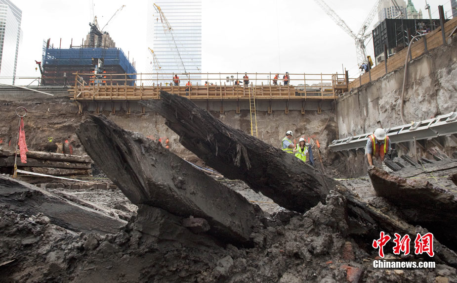 近日,美國(guó)紐約世貿(mào)中心遺址發(fā)現(xiàn)了一艘據(jù)信是18世紀(jì)的古船殘骸。報(bào)道稱(chēng),正在當(dāng)?shù)匦藿ㄐ率蕾Q(mào)大樓的建筑工人意外發(fā)現(xiàn)了這艘古船?脊艑W(xué)家表示,這艘長(zhǎng)約32英尺的古船可能是當(dāng)年用來(lái)運(yùn)料填充哈德遜河。