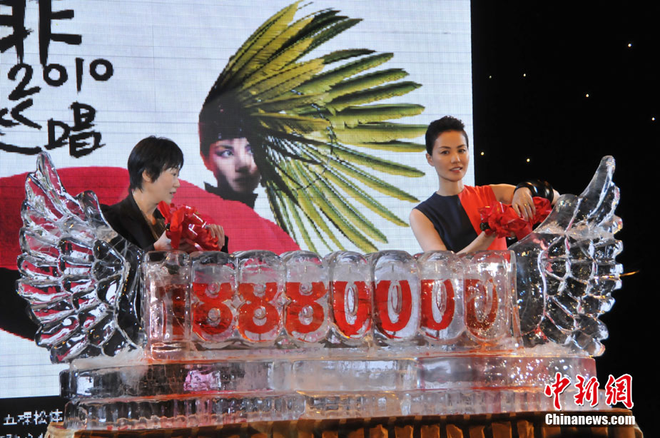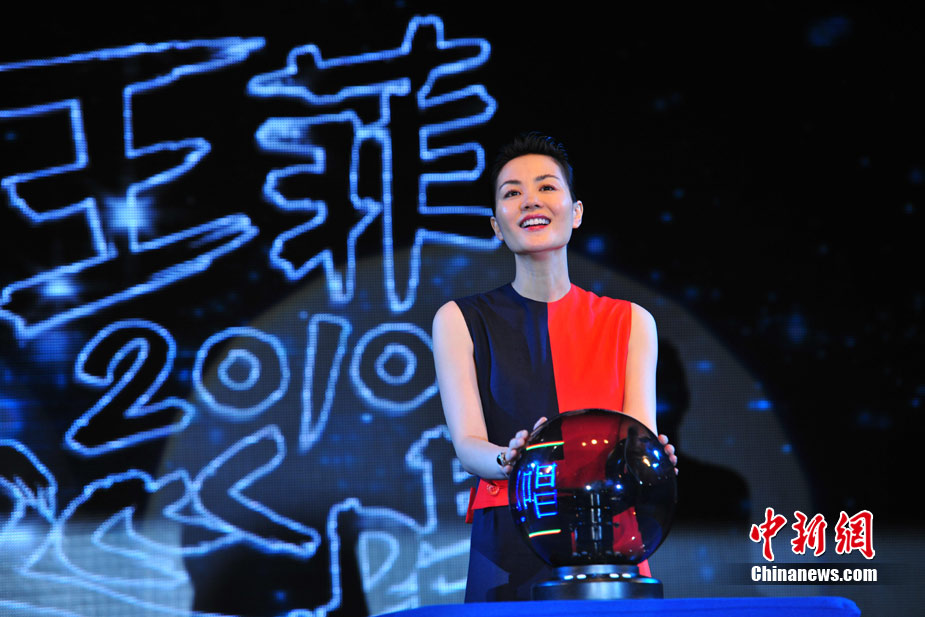 7月19日,王菲演唱會舉行發(fā)布會。淡出歌壇五年的天后王菲身穿紅黑色“八卦裙”現(xiàn)身,盡顯高貴氣質。中新網(wǎng)記者 田博川 攝