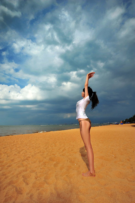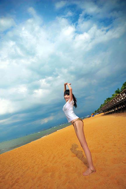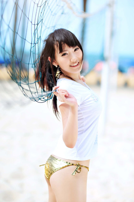 近日,清純美女排球?qū)氊惷贤仙泶┗鹄北然嵩谏碁┥贤嫫鹆伺徘,一件白色襯衣加粉嫩金色的比基尼將孟瞳迪的傲人身材盡情展示。