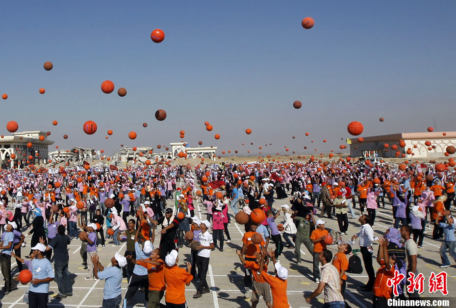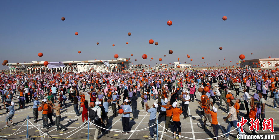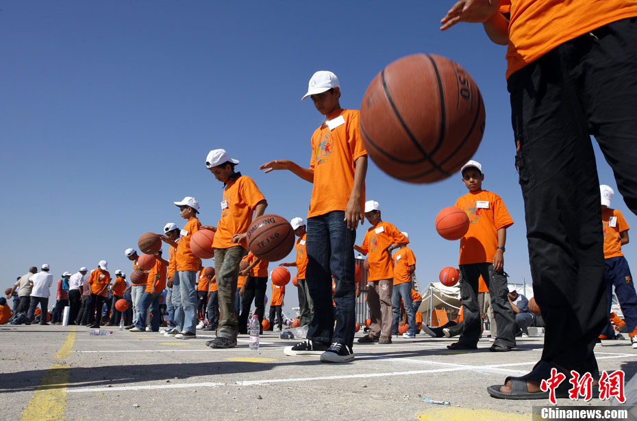 7月22日,加沙地帶7500名巴勒斯坦兒童刷新了最多人在同一地點同時拍籃球的吉尼斯世界紀錄。當日,這些兒童在聯(lián)合國近東巴勒斯坦難民救濟和工程處駐加沙地帶辦事處的組織下,來到加沙地帶南部一個遭以色列轟炸后廢棄的機場!伴_始”的口令一發(fā)出,站成方隊的7500名兒童用單手同時拍起了籃球,連續(xù)進行了5分鐘,創(chuàng)造了最多人在同一時間、同一地點拍籃球的吉尼斯世界紀錄。此前,此項紀錄由美國以4600多人保持。