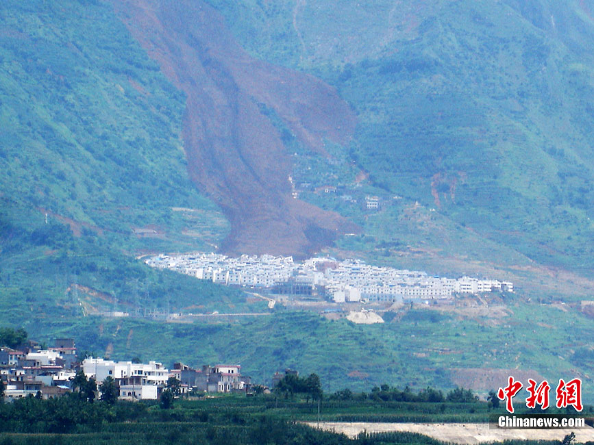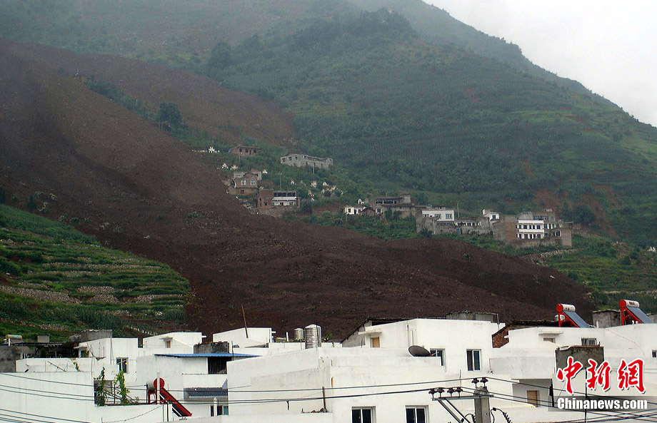 7月27日凌晨5時(shí)許,因連日來的持續(xù)強(qiáng)降雨和暴晴天氣,四川雅安市漢源縣萬工鄉(xiāng)雙合村一組萬工集鎮(zhèn)后背山(小地名二蠻山)突發(fā)滑坡,方量約10萬方,造成萬工集鎮(zhèn)、雙合一組部分村民房屋垮塌。初步核實(shí)共有58戶房屋受損、21人失蹤。初步勘明強(qiáng)降雨形成的新滑坡推移引發(fā)泥石流,方量約10萬方。由于垮滑現(xiàn)場實(shí)施救援較為危險(xiǎn),滑坡暫時(shí)被房屋擋住,隨時(shí)可能推到房屋再次下滑,救援人員已經(jīng)全部撤離。災(zāi)害發(fā)生后,當(dāng)?shù)匮杆僬{(diào)集武警、消防等98人趕赴現(xiàn)場救援,還有230人待命。目前,帳篷、食品、飲用水等救災(zāi)物資已陸續(xù)運(yùn)往臨時(shí)安置點(diǎn),尚未發(fā)現(xiàn)新增失蹤人員。圖為山體垮滑現(xiàn)場。中新社發(fā) 孫浩 攝