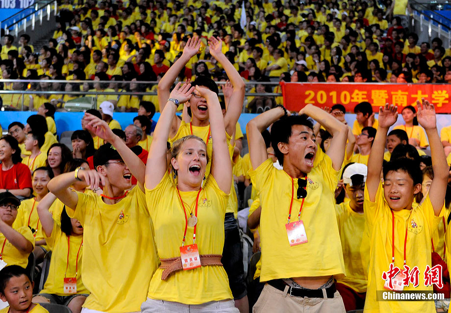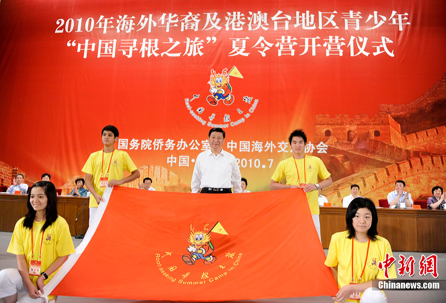 7月25日,海外華裔及港澳臺(tái)地區(qū)青少年“中國(guó)尋根之旅”夏令營(yíng)開(kāi)營(yíng)儀式在北京人民大會(huì)堂舉行,中共中央政治局常委、國(guó)家副主席習(xí)近平向參加夏令營(yíng)的青少年授旗。此次夏令營(yíng)為歷屆規(guī)格最高、規(guī)模最大的一次,共有來(lái)自世界51個(gè)國(guó)家和港澳臺(tái)地區(qū)的6000余名華裔青少年參加。該夏令營(yíng)由國(guó)務(wù)院僑務(wù)辦公室和中國(guó)海外交流協(xié)會(huì)舉辦。中新社發(fā) 廖攀 攝