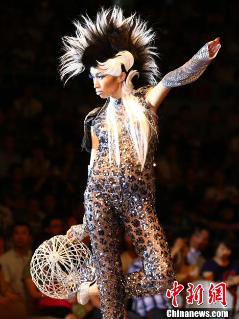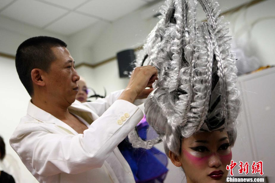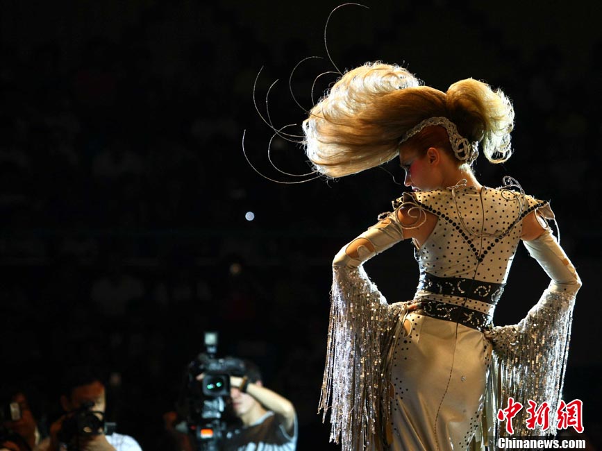 7月28日,為期兩天的“2010中國發(fā)型師藝術(shù)節(jié)”在北京落幕,此次主題為“思想碰撞,演繹潮流”。在當(dāng)日下午進(jìn)行的“2010年中國國際發(fā)型趨勢發(fā)布會(huì)”上,包括中國審美在內(nèi)的三家國內(nèi)外知名美發(fā)團(tuán)隊(duì)登場獻(xiàn)技,以古典、時(shí)尚、中式、歐美的發(fā)型風(fēng)格,剖析著中國未來發(fā)型的流行走向。中新社記者 富田 攝