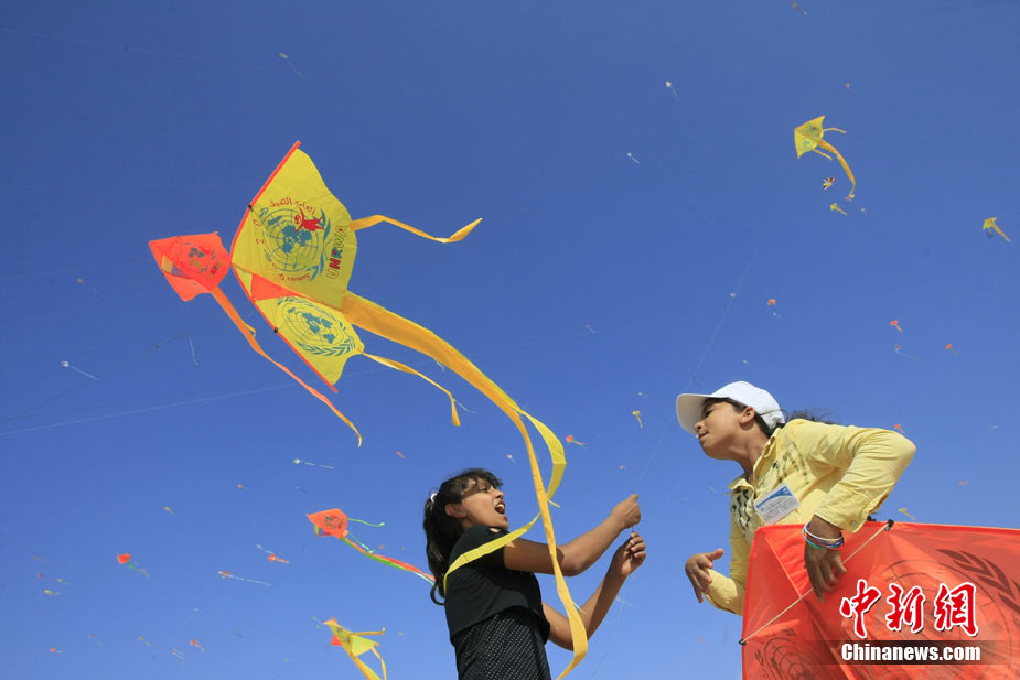 7月29日,7500名巴勒斯坦兒童在加沙地帶北部的海灘上同時(shí)放飛自制風(fēng)箏,刷新了他們?nèi)ツ暝谶@里創(chuàng)造的吉尼斯世界紀(jì)錄。