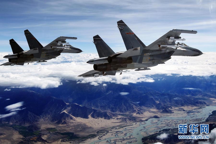 7月6日,戰(zhàn)機(jī)在青藏高原上空飛行。今年3月以來,成都軍區(qū)空軍某部在西藏進(jìn)行第三代戰(zhàn)機(jī)攜實(shí)彈高原訓(xùn)練,組織戰(zhàn)機(jī)進(jìn)行高原條件下的復(fù)雜氣象飛行、戰(zhàn)術(shù)戰(zhàn)法探索飛行以及極限性能檢測飛行等訓(xùn)練。劉應(yīng)華 攝