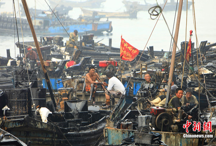 7月31日,清污人在大連大孤山附近海域沙灘上清理被海水沖到岸邊的污染物,其中很多是女性。距離大連“7·16”輸油管道爆炸火災(zāi)事故已經(jīng)半月之久了,雖然事故尚未最后認(rèn)定,但事故方中石油為了善后此事,初步核算已花費(fèi)至少數(shù)億。漏油事發(fā)的大連新港位于大孤山半島,三面環(huán)海,南臨大連灣,北面與大窯灣毗鄰,東朝黃海,隸屬大連保稅區(qū),距大連市區(qū)約25公里。中新社發(fā) 杜洋 攝