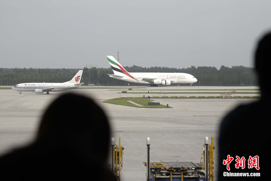 8月1日,阿聯(lián)酋航空公司A380飛機(jī)降落在北京首都機(jī)場(chǎng),這是世界上最大客機(jī)A380執(zhí)行的首條定期飛北京的航線。空客A380是世界上最環(huán)保的商業(yè)客機(jī),它的合成材料、輕身原料和加固構(gòu)架使其每座位燃油消耗比其他同類型飛機(jī)低20%以上。