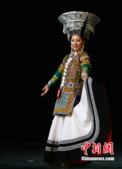 8月3日凌晨,來自四川、云南、貴州的100多位彝族青年男女經(jīng)過4個多小時緊張的復(fù)賽,65名彝族青年男女進入決賽。本次大賽吸引了云南楚雄、紅河、石林,巍山、寧蒗,貴州威寧和四川九龍、石棉、涼山州等12個州、縣的彝族青年男女共同角逐“索瑪”獎和“金鷹”獎。通過初賽、復(fù)賽、決賽3J賽制,選出彝族最靚的美女和最俊的帥哥,將分別授予“索瑪獎”和“金鷹獎”。圖為比賽中的參賽選手。中新社發(fā) 劉忠俊 攝