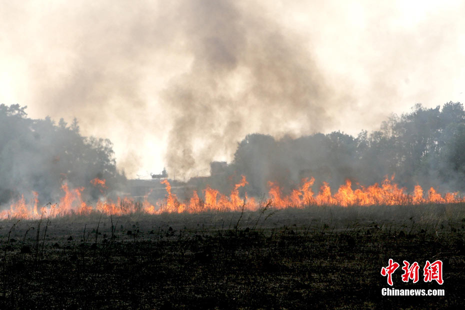 8月5日,在距離莫斯科市區(qū)僅15公里處的一家加油站附近突然燃起森林大火,情勢非常危急。當(dāng)?shù)孛癖娮园l(fā)與消防人員全力滅火。中新社發(fā) 田冰 攝