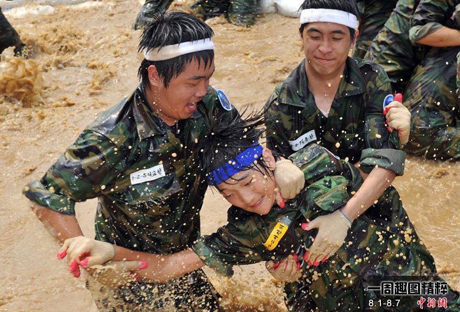 8月4日,韓國(guó)首爾,200名學(xué)生在富川特種作戰(zhàn)司令部進(jìn)行軍事訓(xùn)練,鍛煉身心、磨練意志。