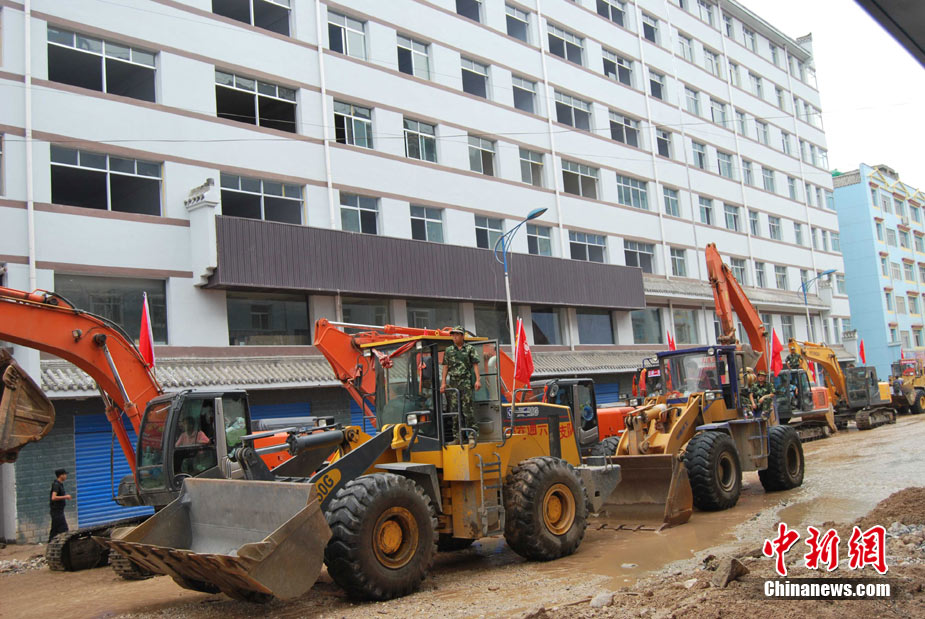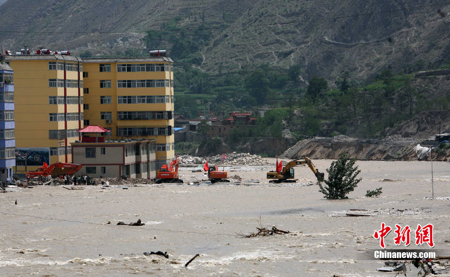 8月9日,甘肅舟曲泥石流災(zāi)區(qū)搜救進(jìn)入第二天。圖為消防官兵正在搜尋失蹤人員。中新社發(fā) 劉忠俊 攝