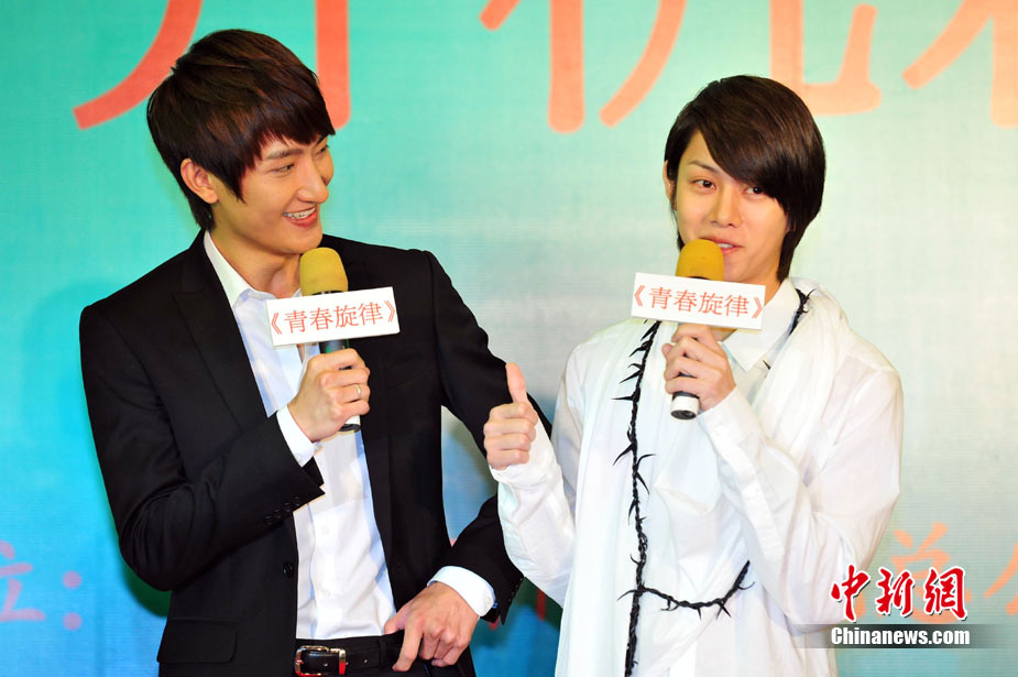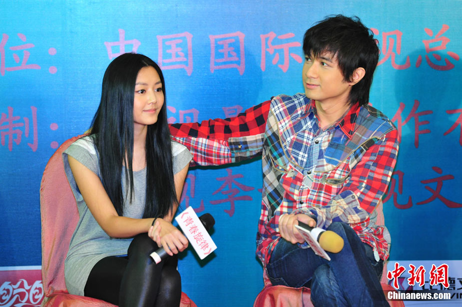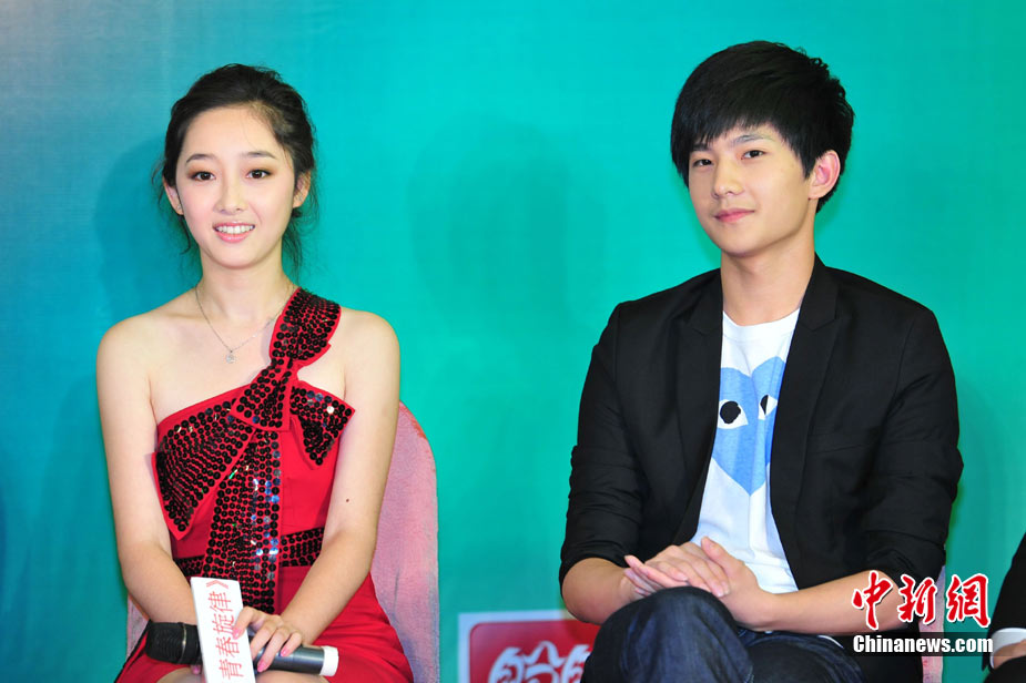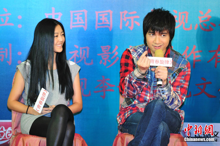 8月9日,央視8集青春勵(lì)志劇《青春旋律》舉行開(kāi)機(jī)新聞發(fā)布會(huì)。主演古巨基、詩(shī)雅、楊洋、蔣夢(mèng)婕、金希澈、周覓到場(chǎng)。古巨基在劇中“高齡”出演大學(xué)生——男主角汪雨航。發(fā)布會(huì)上,古仔一身大學(xué)生裝扮顯得青春活力十足。片中,新版《紅樓夢(mèng)》中的寶黛:楊洋、蔣夢(mèng)婕將再次攜手出演。韓國(guó)人氣藝人、Super Junior成員金希澈的加盟也為該片大增熱度。圖為寶黛將再度攜手。中新社發(fā) 李學(xué)仕 攝