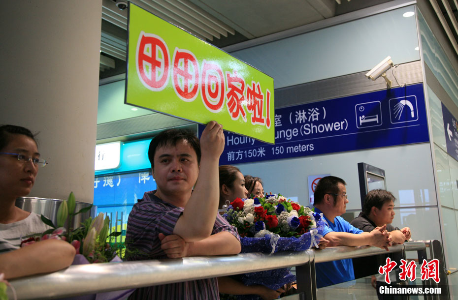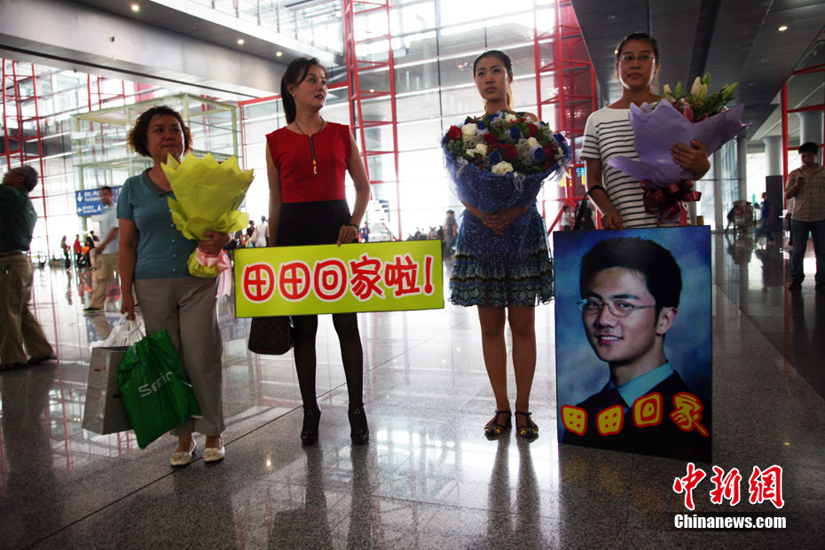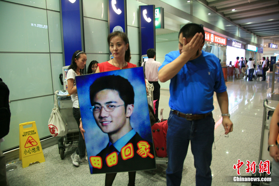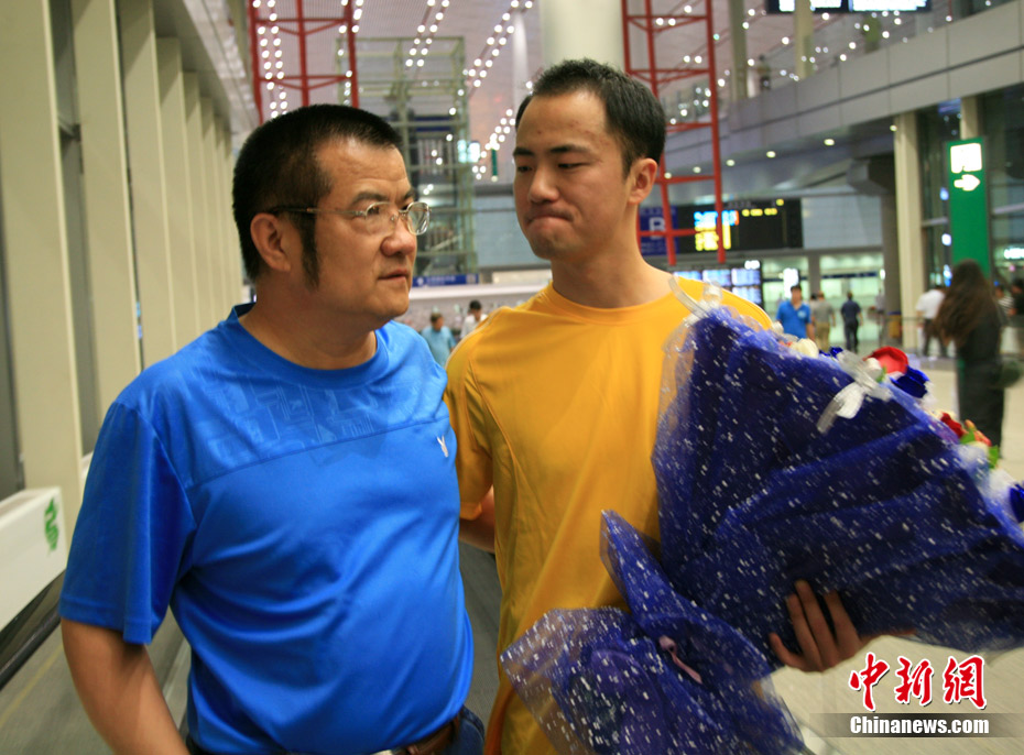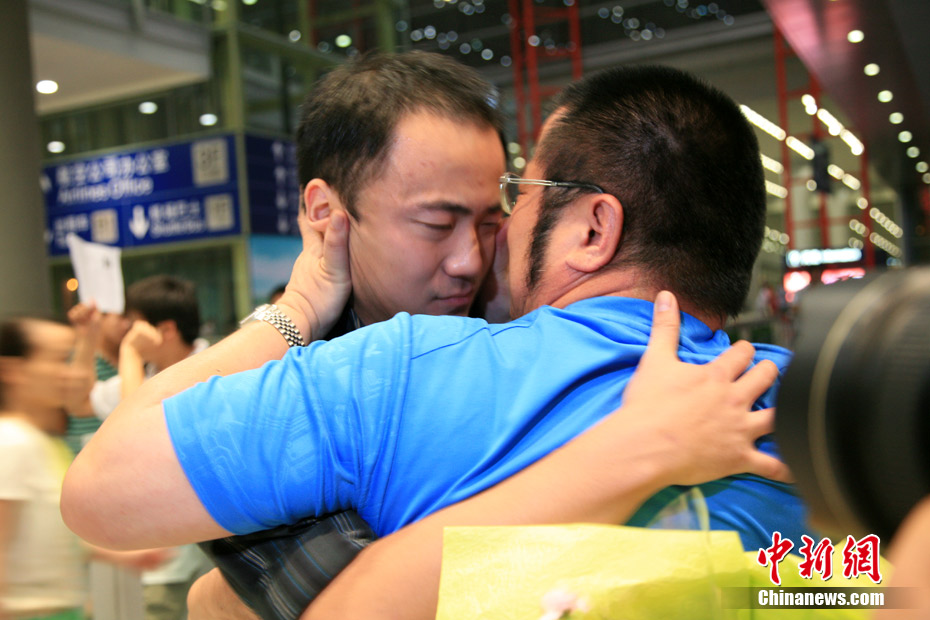 8月10日晚間,被控以“恐怖威脅”罪而被逮捕的中國留美博士生翟田田,自紐約肯尼迪國際機場抵達北京首都國際機場。在異國他鄉(xiāng)經(jīng)歷約4個月的牢獄之災(zāi)后,翟田田終于憑藉“自動離境”權(quán)利離美歸國。今年4月份,在美國新澤西州攻讀博士學(xué)位的翟田田因與校方發(fā)生矛盾,以“恐怖威脅”罪名被逮捕,并遭校方退學(xué)并被美國移民局關(guān)入移民監(jiān)獄。圖為翟田田與8年未曾謀面的父親相擁而泣。中新網(wǎng)記者 張冬冬 攝
