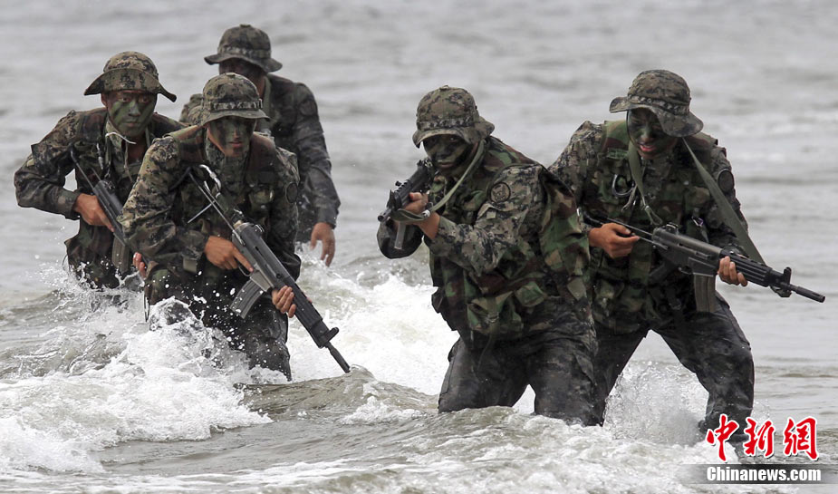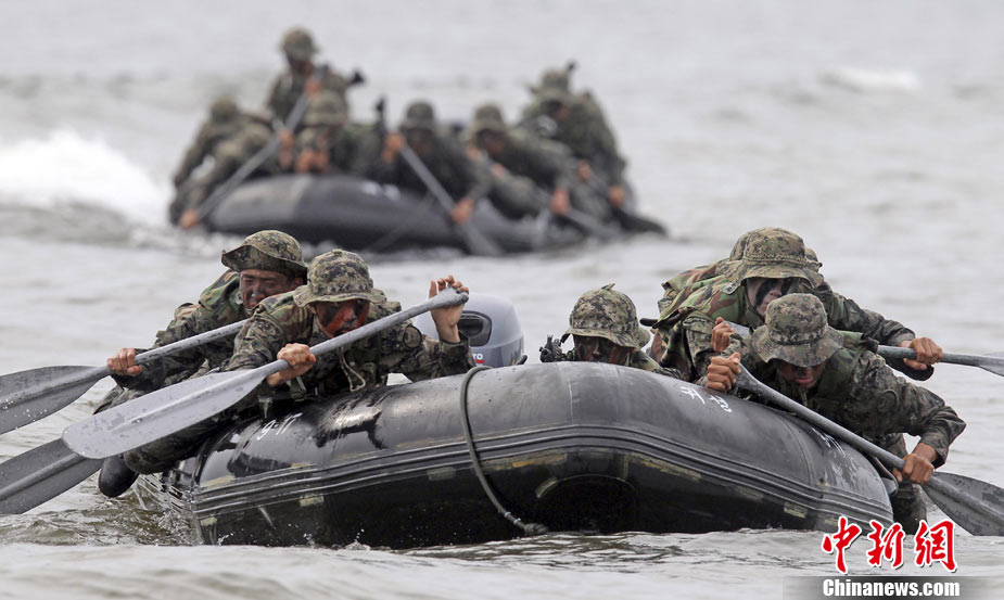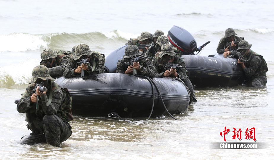 8月12日,韓國泰安郡安眠島,韓國陸軍特種部隊在海灘上進行訓練。