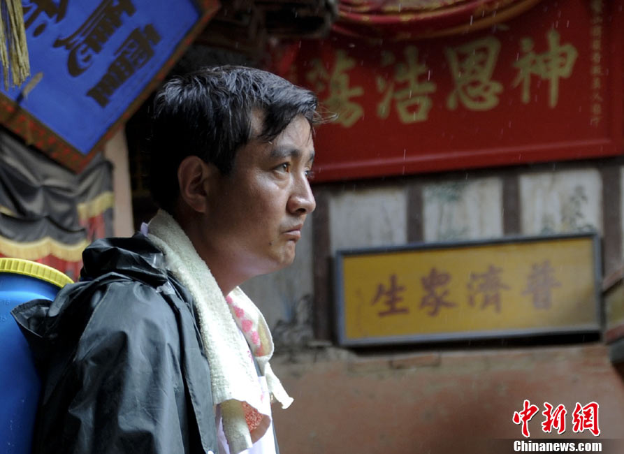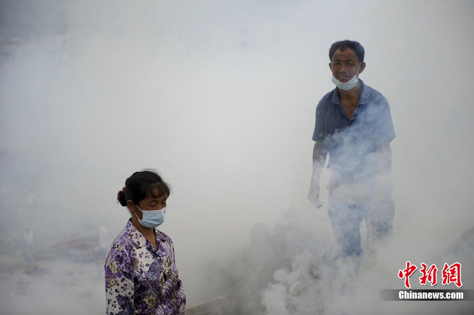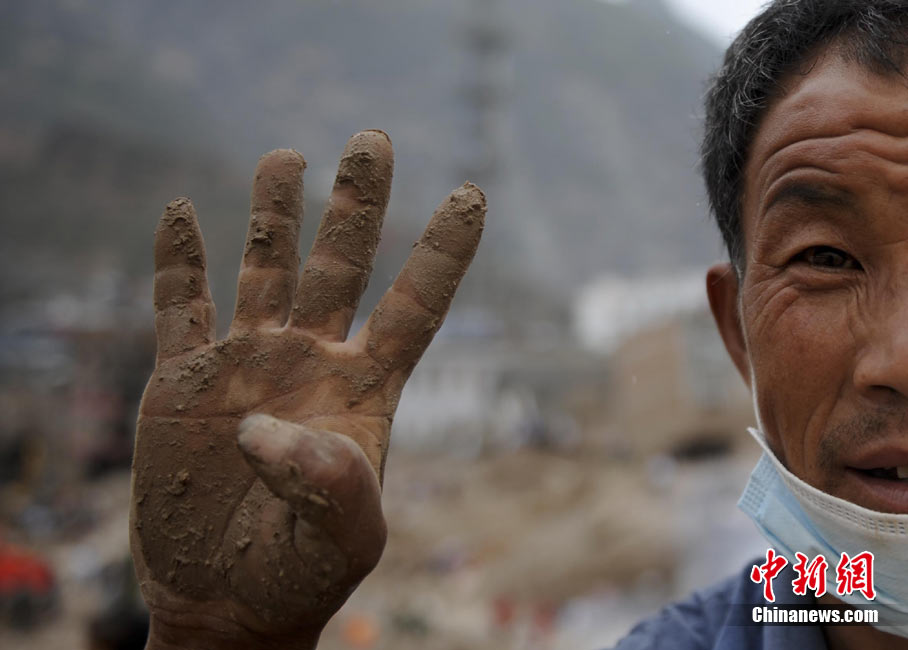 舟曲一位居民整理親人遺物的手,他有四位親人遇難。8月8日凌晨,甘肅省舟曲縣因強降雨引發(fā)滑坡泥石流,造成重大人員傷亡,電力、交通、通訊中斷。中新社記者 廖攀攝