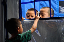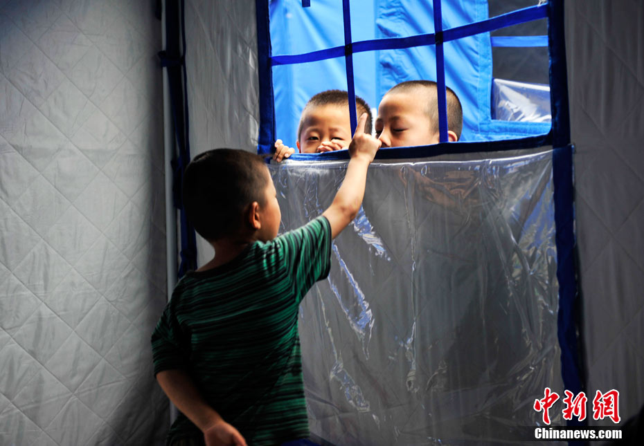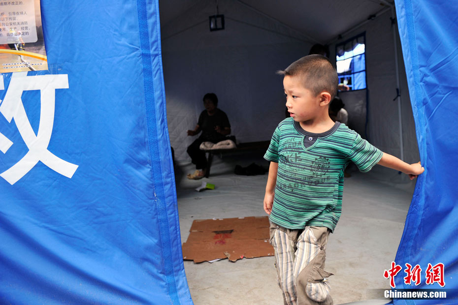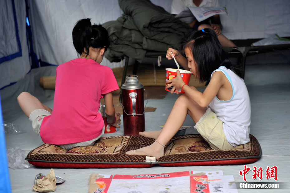 8月12日,甘肅舟曲災(zāi)區(qū)受災(zāi)群眾安置點內(nèi)的孩子們。甘肅舟曲特大山洪泥石流災(zāi)害發(fā)生后的第5天,隨著救災(zāi)物資持續(xù)運進(jìn)舟曲災(zāi)區(qū),臨時安置點的生活條件也逐漸得到改善,各類設(shè)施逐漸齊全,受災(zāi)群眾在這里重啟生活。中新網(wǎng)記者 金碩 攝