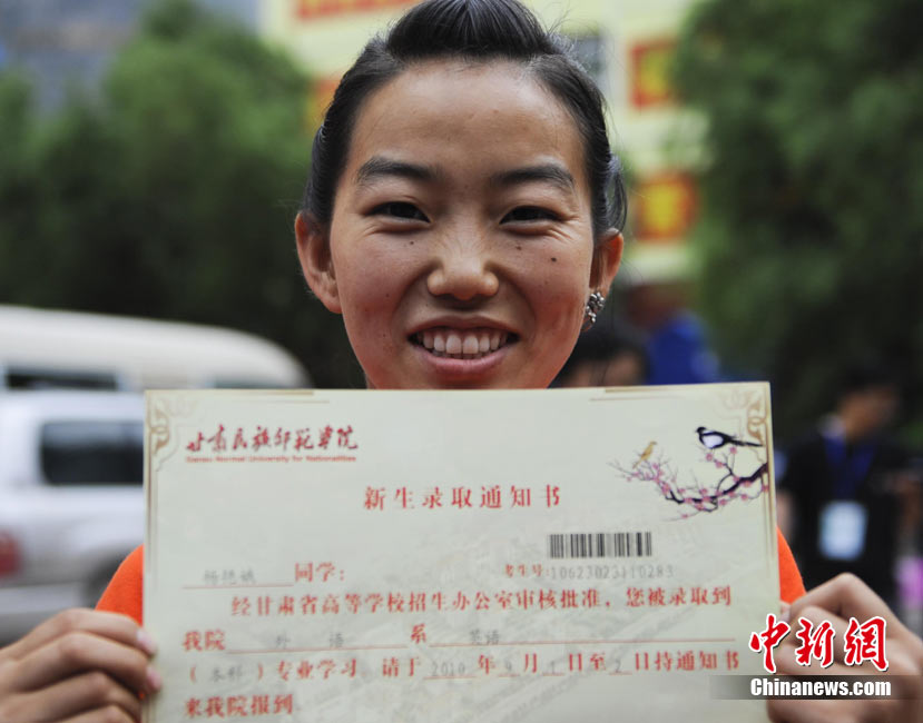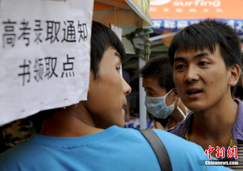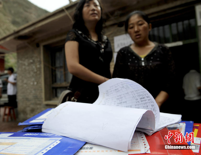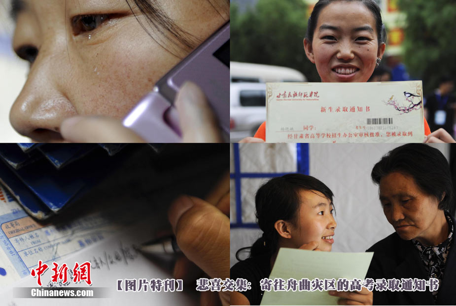 8月14日,甘肅舟曲災(zāi)區(qū)的高考錄取通知書(shū)正在發(fā)放過(guò)程中,學(xué)生們接過(guò)火紅色的錄取通知書(shū)信封,眼里有藏不住的笑意。然而,有一些通知書(shū)卻永遠(yuǎn)無(wú)法發(fā)出了。截至上午10點(diǎn)30分,舟曲一中收發(fā)室當(dāng)天共發(fā)出7份錄取通知書(shū),還有30多封正等待領(lǐng)取。中新社發(fā) 廖攀 攝