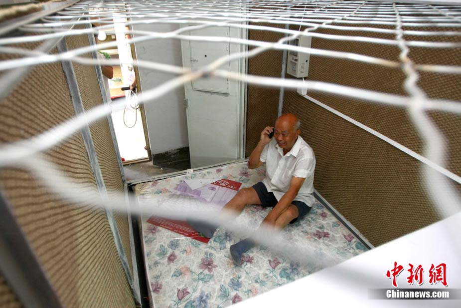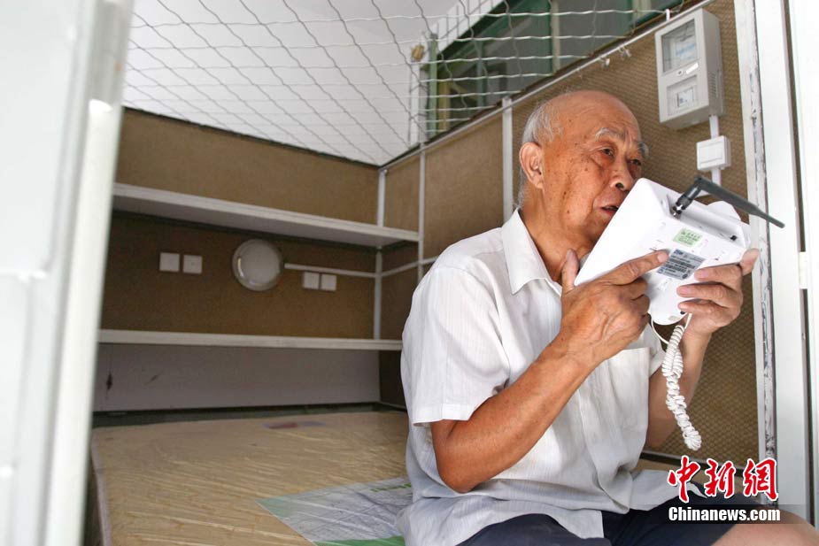 8月16日,在北京石景山區(qū)麻峪東街,78歲老人黃日新所建的第三代膠囊公寓開張。第三代膠囊公寓設(shè)有單人間和夫妻間(圖),大小為長2.4米、寬1.2米(夫妻房寬1.6米)、高2米。每個(gè)膠囊房間采用席夢(mèng)思床墊,在電腦桌上方安置床頭柜,安裝獨(dú)立電表,并增設(shè)廚房和廁所。中新社發(fā) 富田 攝
