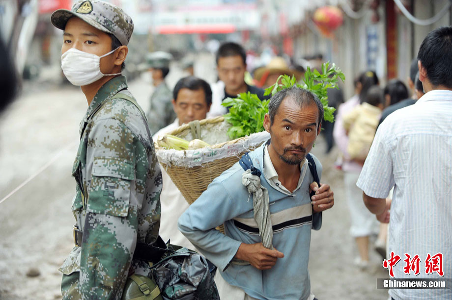 8月16日,舟曲特大泥石流發(fā)生后第9天,一些罹難者的家屬仍然在泥沙中不懈地挖掘,尋找親人的遺體。圖為何繽芬與舅舅一同在廢墟里搜尋。中新社發(fā) 陳文 攝