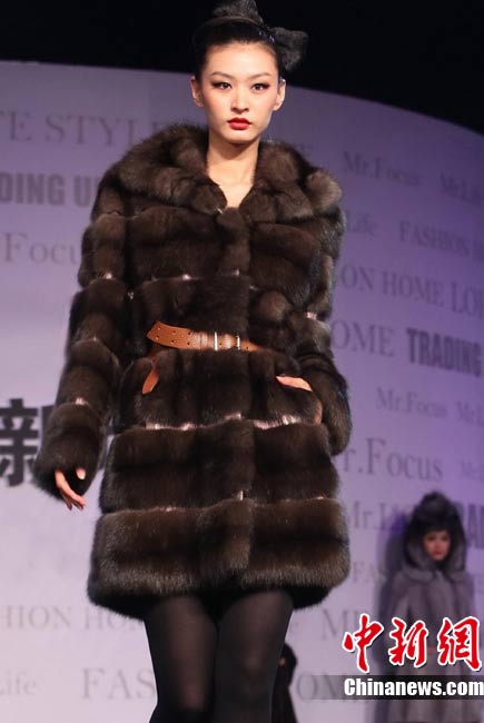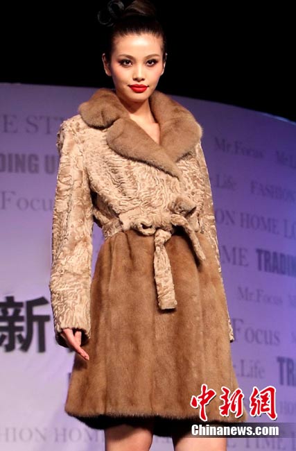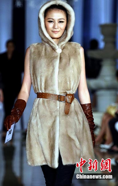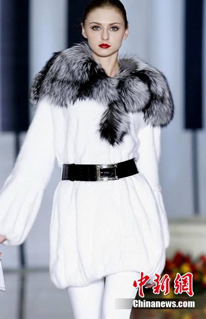 日前,某著名高級時裝品牌在北京舉行2010/11秋冬皮草流行趨勢及新品發(fā)布會”,此次新品發(fā)布會將低調(diào)奢華的設(shè)計理念貫穿皮草產(chǎn)品線中,將創(chuàng)新開發(fā)和設(shè)計重組完美統(tǒng)一,讓皮草更加具備年輕化和時尚化的嶄新氣質(zhì)。圖為模特展示2010/11秋冬皮草流行趨勢及新品。