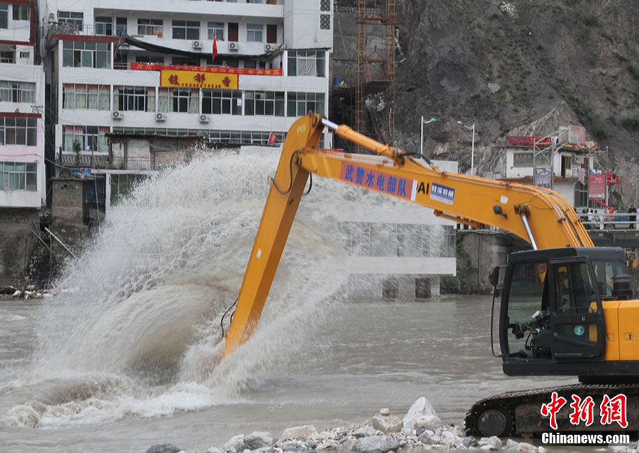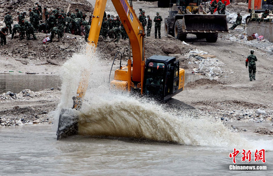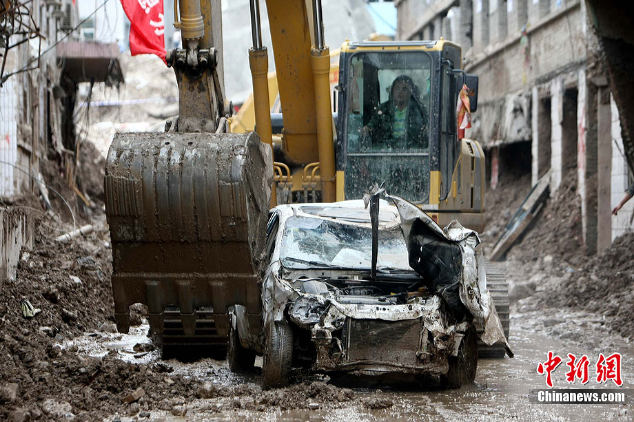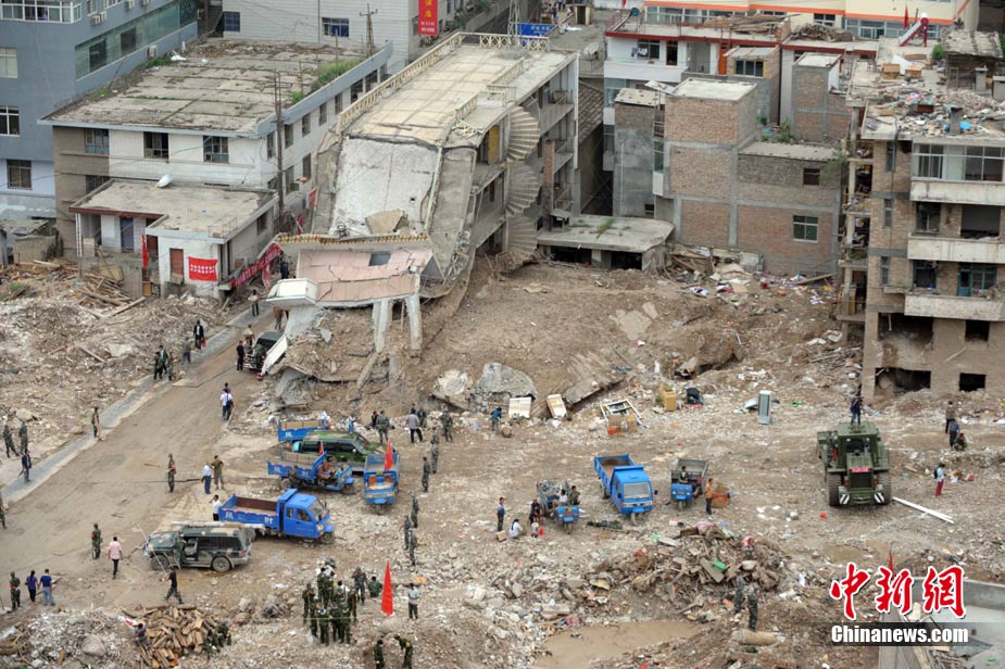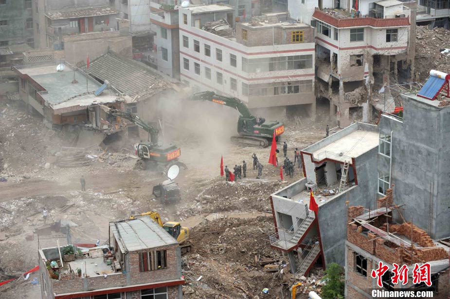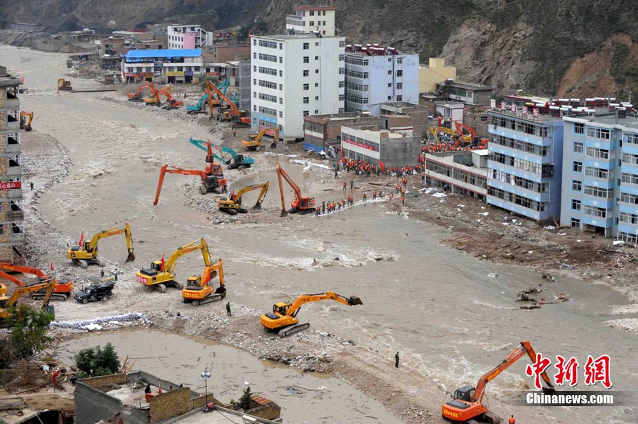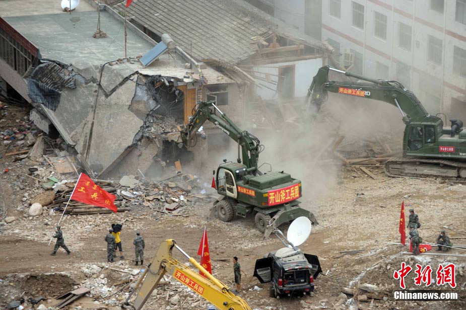 8月18日上午,由蘭州軍區(qū)某集團(tuán)軍“開山斧工兵團(tuán)”大型機(jī)械對(duì)舟曲特大山洪泥石流災(zāi)害所致三眼峪重災(zāi)區(qū)危樓進(jìn)行拆除。中新社記者 陳文 攝