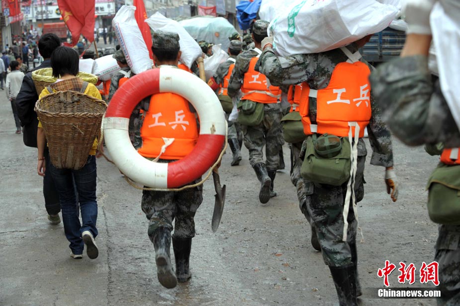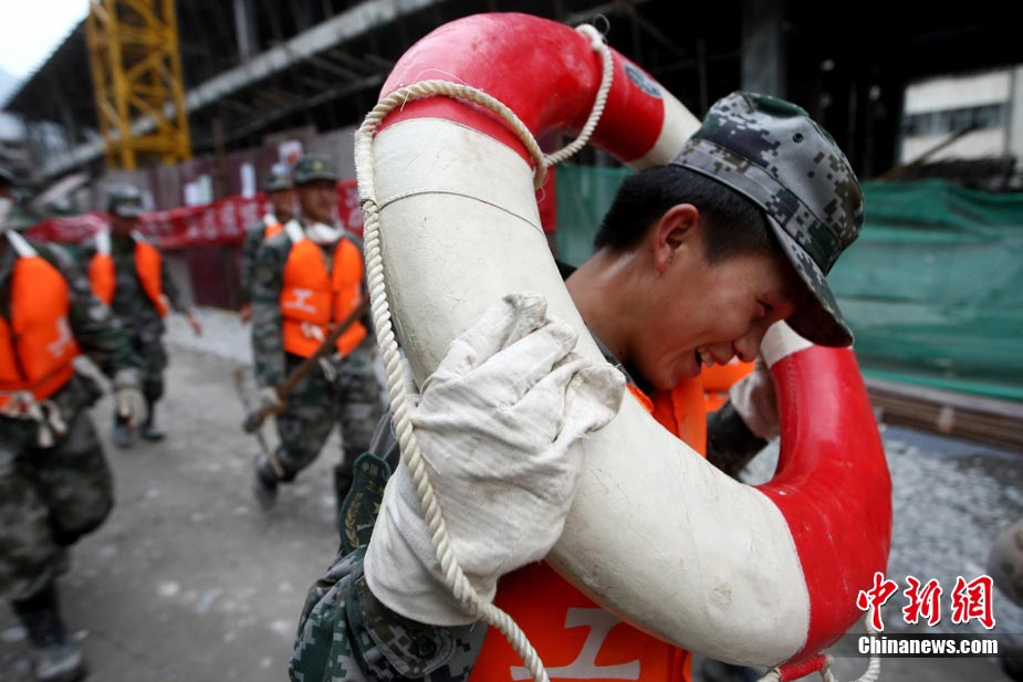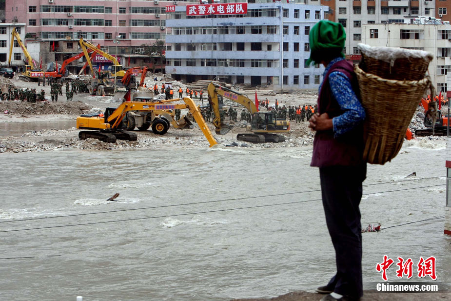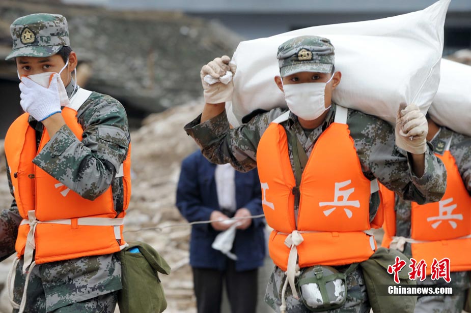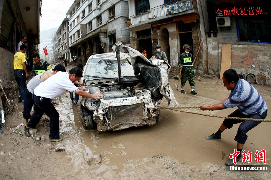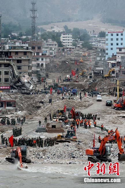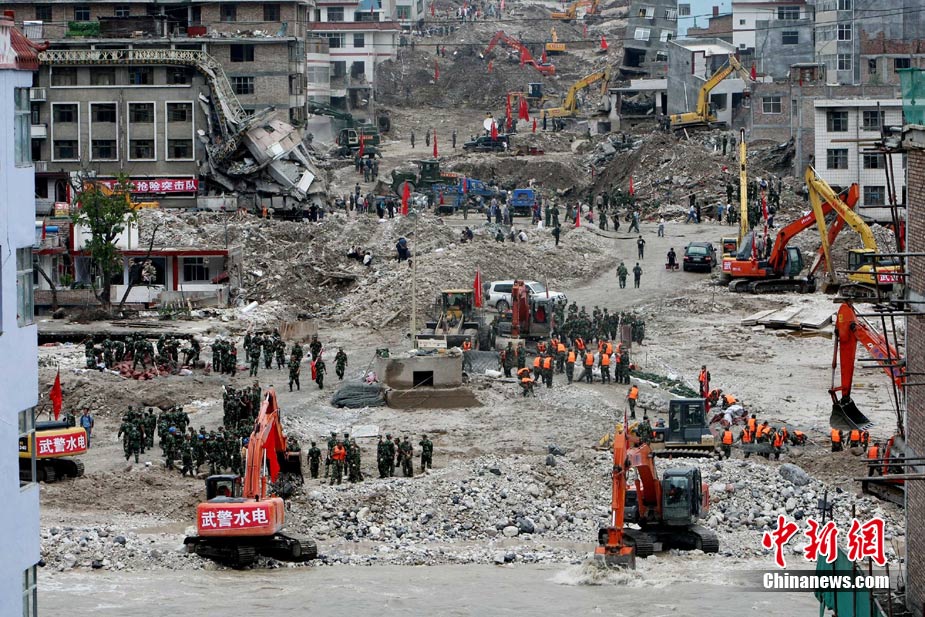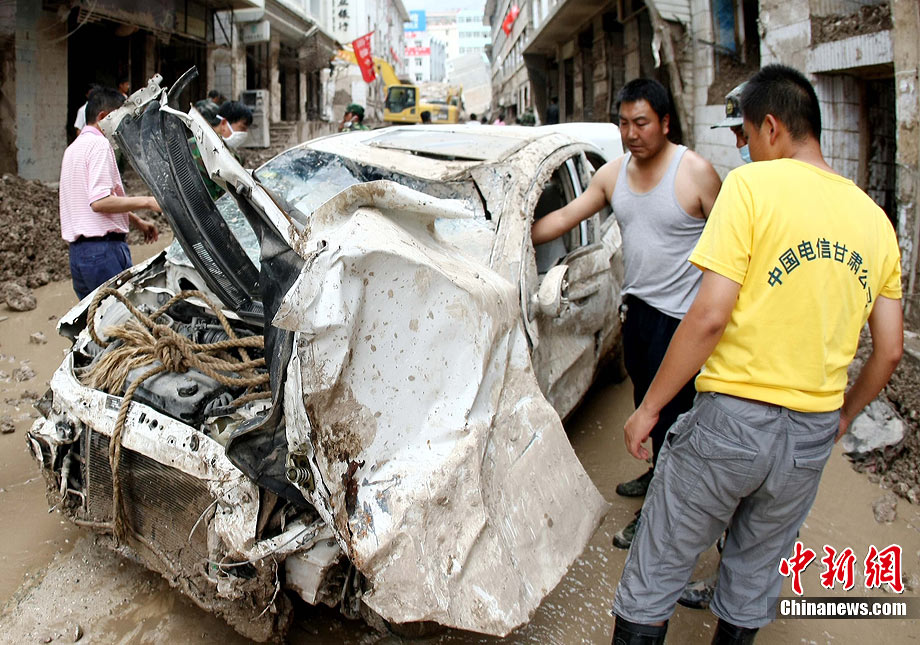 8月18日上午,由蘭州軍區(qū)某集團(tuán)軍“開山斧工兵團(tuán)”大型機(jī)械對(duì)舟曲特大山洪泥石流災(zāi)害所致三眼峪重災(zāi)區(qū)危樓進(jìn)行拆除。中新社記者 陳文 攝