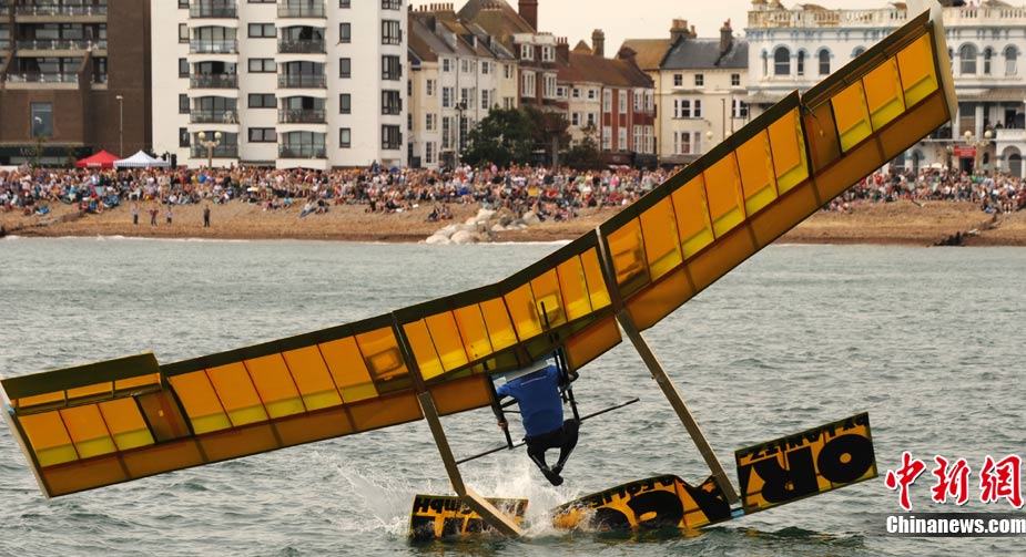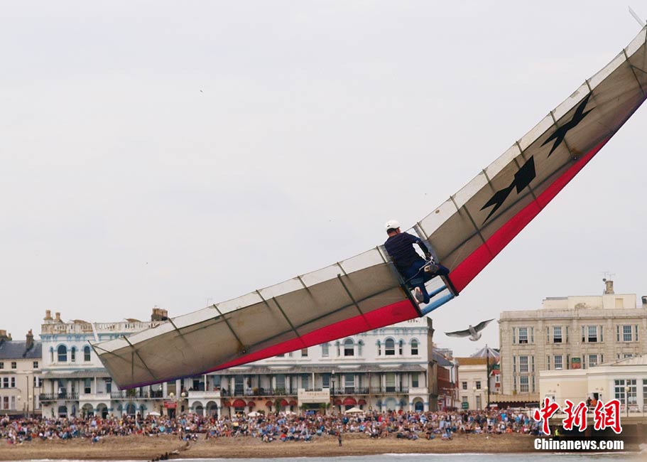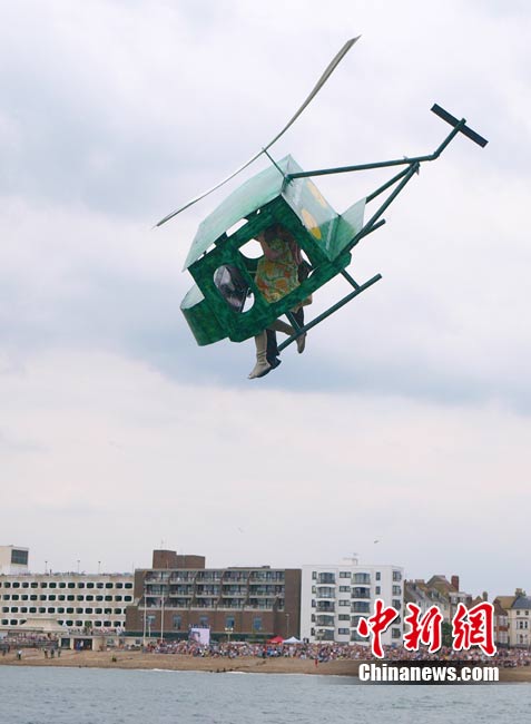 近日,一年一度的沃辛國(guó)際鳥(niǎo)人大賽在英國(guó)蘇塞克斯的一個(gè)海邊小鎮(zhèn)舉行。選手們不僅帶來(lái)造型奇特的飛行裝置,還身著搞笑服裝以吸引觀眾注意。