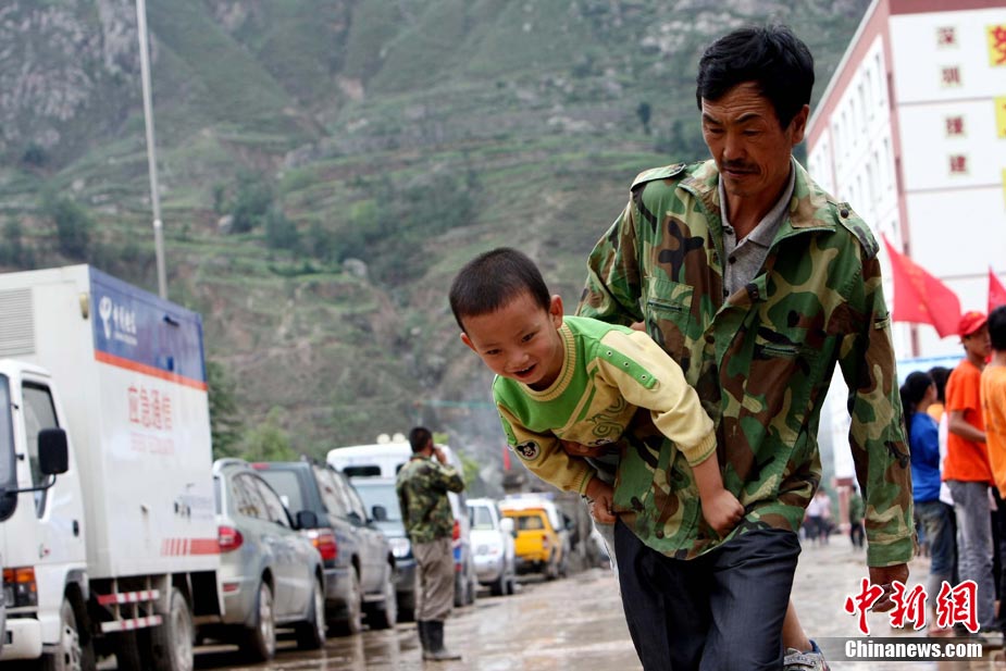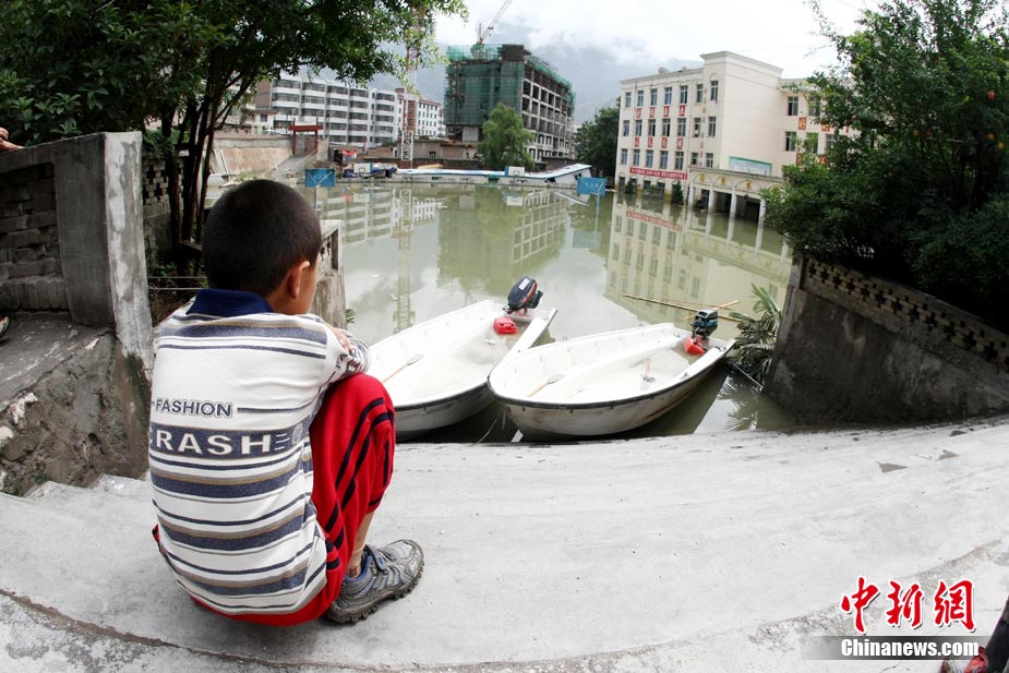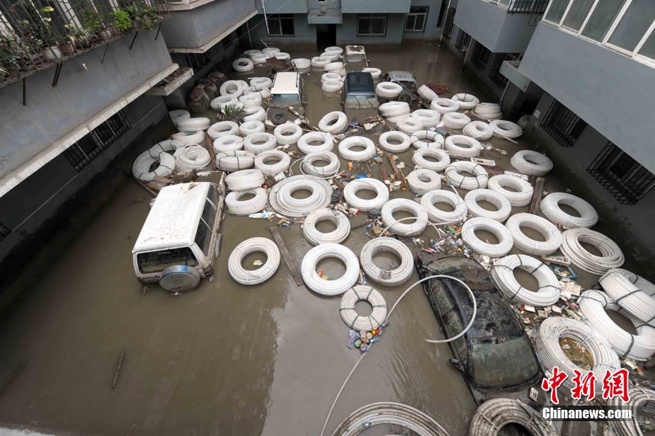 舟曲縣城因泥石流形成的白龍江堰塞湖,經過救災部隊官兵連續(xù)多日疏通,水位已經明顯下降,但后續(xù)的清淤任務仍很艱巨。圖為舟曲一受災小區(qū)內淹沒的小轎車浮出水面。中新社記者 陳文 攝