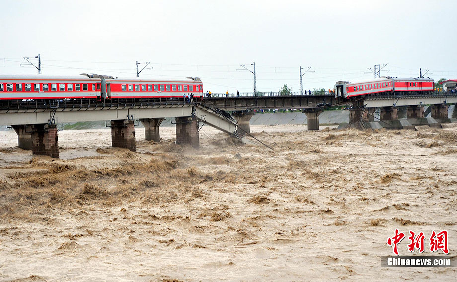 中新網(wǎng)成都8月19日電(楊杰 周迪迪 田甜)19日下午15時(shí)20分,從西安開(kāi)往昆明的K165次列車兩節(jié)車廂在四川廣漢市境內(nèi)掉進(jìn)石亭江,被洪水沖出200米遠(yuǎn)。經(jīng)過(guò)緊張的營(yíng)救,車上人員已全部安全轉(zhuǎn)移,未出現(xiàn)人員傷亡。安源 攝