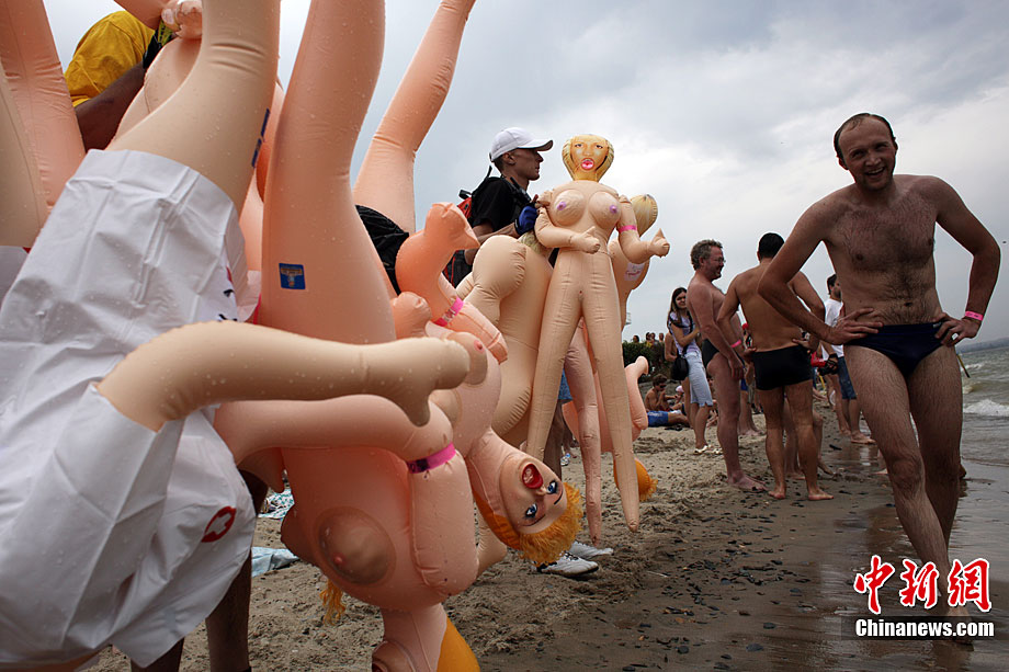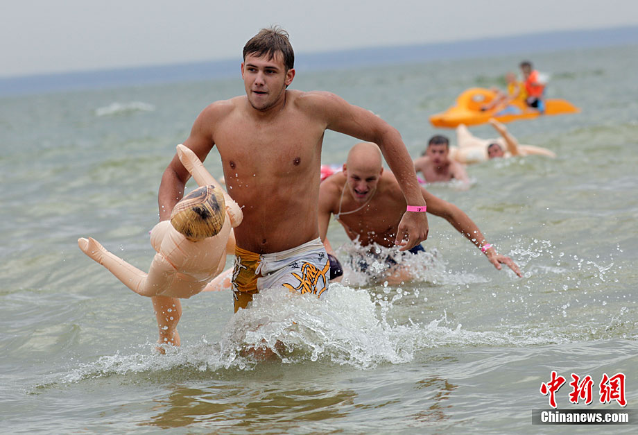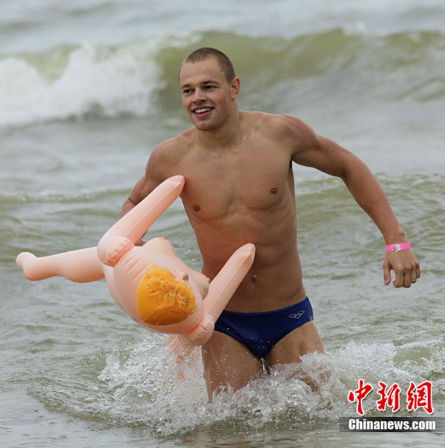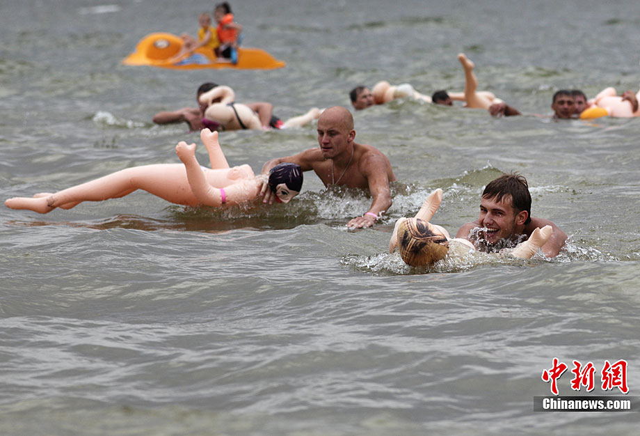 當(dāng)?shù)貢r(shí)間8月22日,一場(chǎng)別開(kāi)聲面的搞笑游泳比賽在俄羅斯西伯利亞城市新西伯利亞舉行,數(shù)十名俄羅斯壯漢懷抱“充氣娃娃”躍入河中進(jìn)行游泳比賽。不過(guò),從比賽實(shí)況來(lái)看,很顯然這些參賽者并沒(méi)有把充氣娃娃當(dāng)“伴侶”來(lái)對(duì)待,多半都當(dāng)成游泳圈,使得氣氛既搞笑卻又帶點(diǎn)詭異。