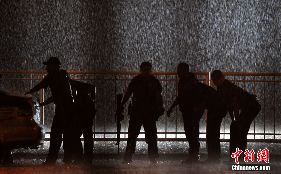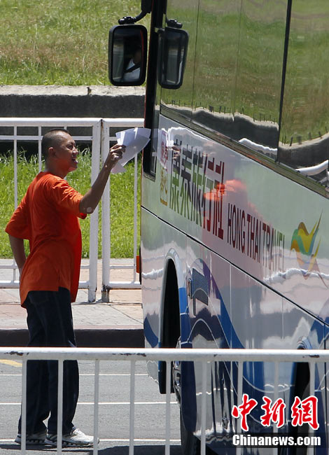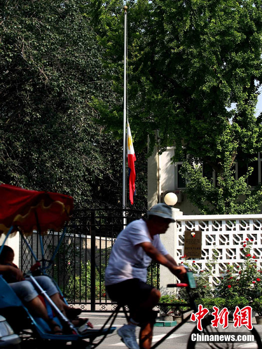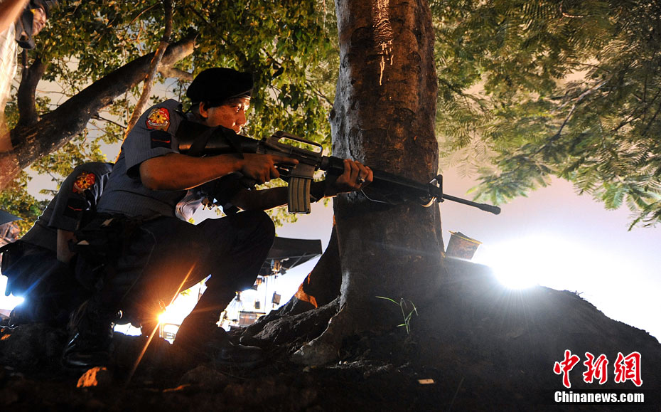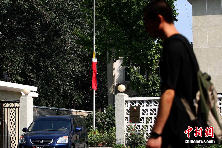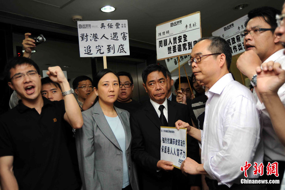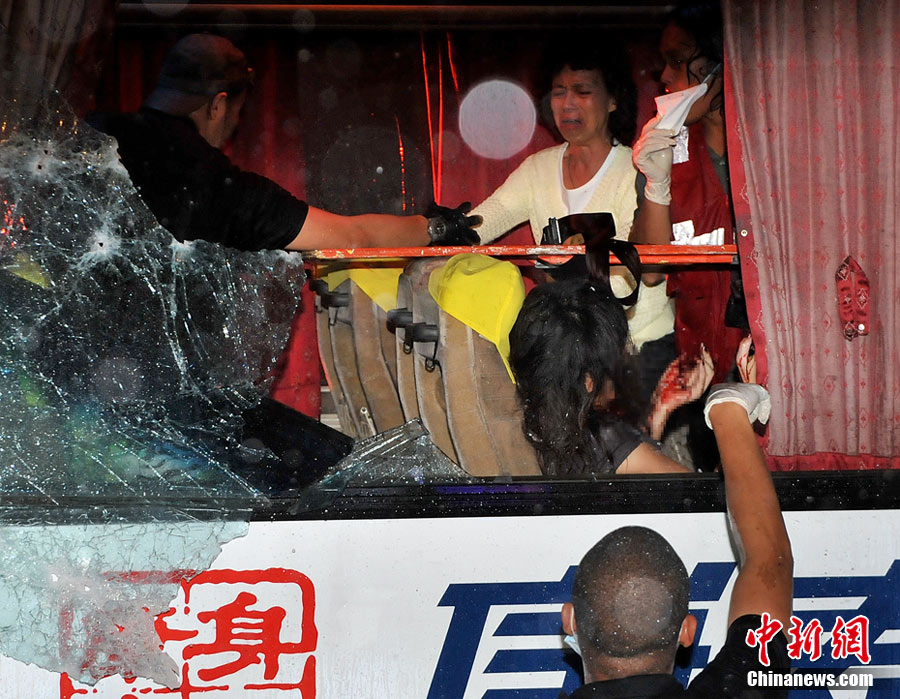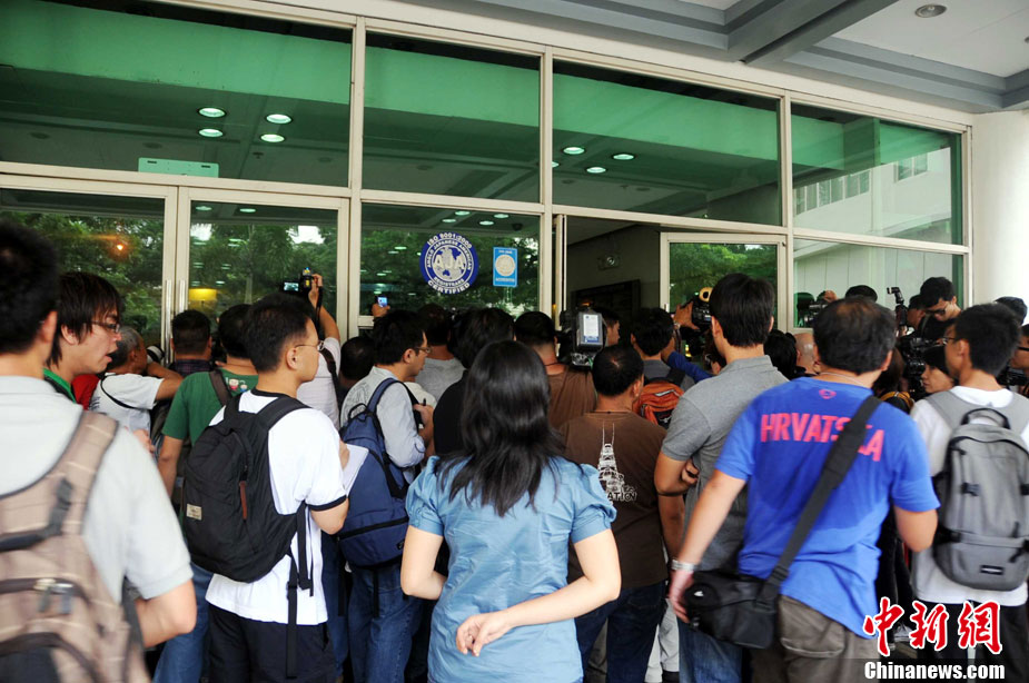 香港康泰旅行社23日證實,一個21人的香港旅行團(tuán)在菲律賓馬尼拉被劫持。旅行團(tuán)包括20名香港游客和1名香港領(lǐng)隊,其中有3名兒童。劫持者是一位被革職的警察。截止目前已有6名人質(zhì)獲釋,其中包括3名兒童。圖為劫持者站在被劫持的旅游觀光車門口。