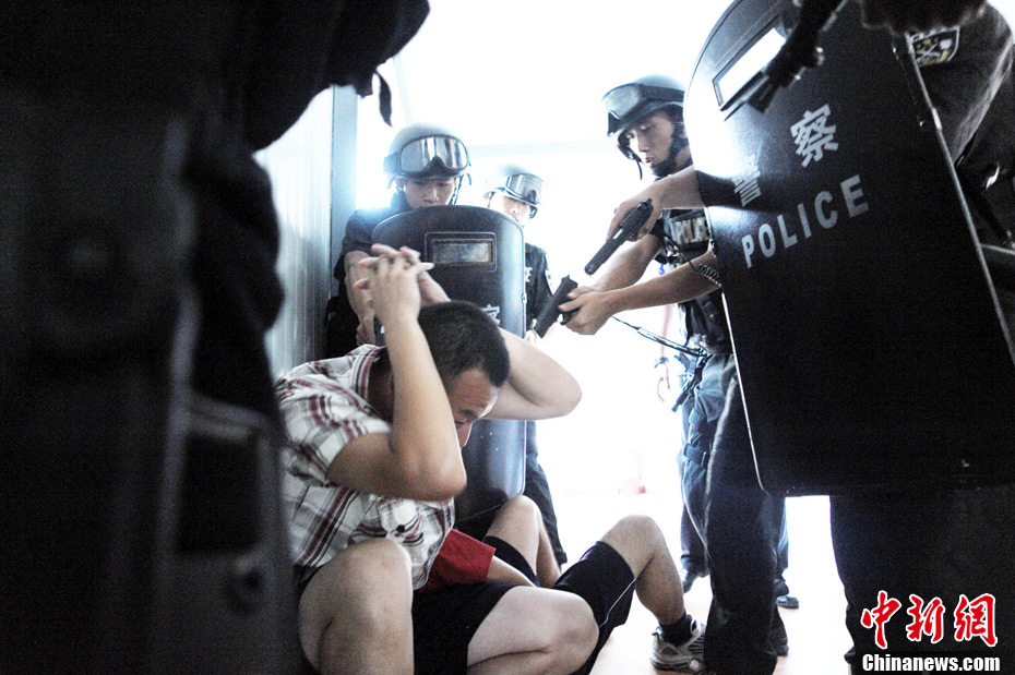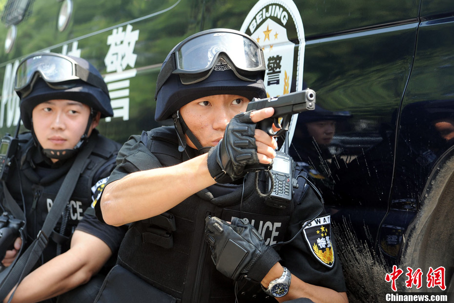 近日,北京警方在奧體中心體育館、北京科技大學(xué)體育館等4個場館和4個住地同時舉行多警種綜合演練,通過演練檢驗(yàn)實(shí)戰(zhàn)效果和處突技能。根據(jù)預(yù)先制定的67個工作方案,有近11個警種在前期結(jié)合職責(zé)分工進(jìn)行了單警種演練。本月27日起,涉及比賽和訓(xùn)練的所有場館和住地將實(shí)行24小時封閉守護(hù),北京警方將采取各種科技手段,確保首屆武搏會安全順利舉辦。中新社發(fā) 李連杰 攝