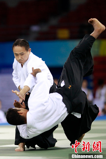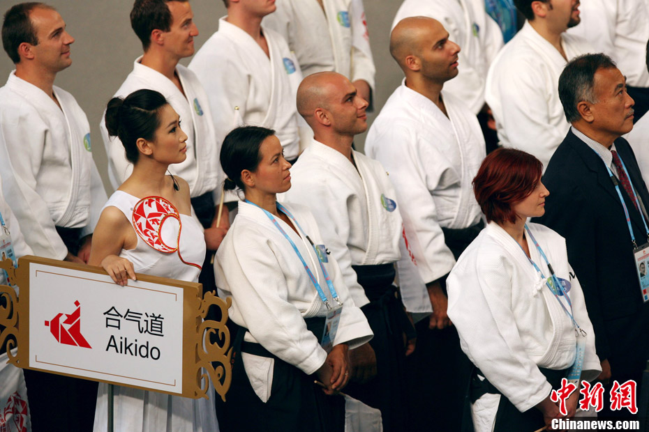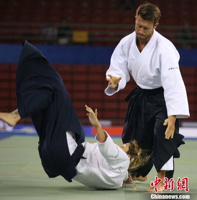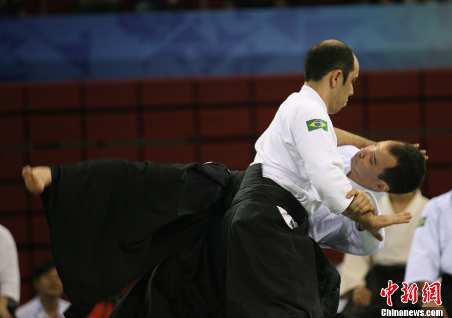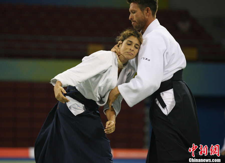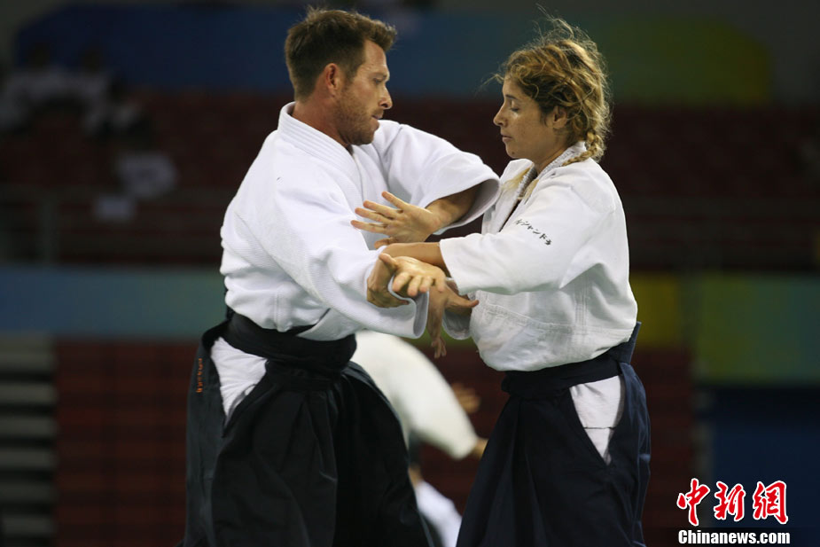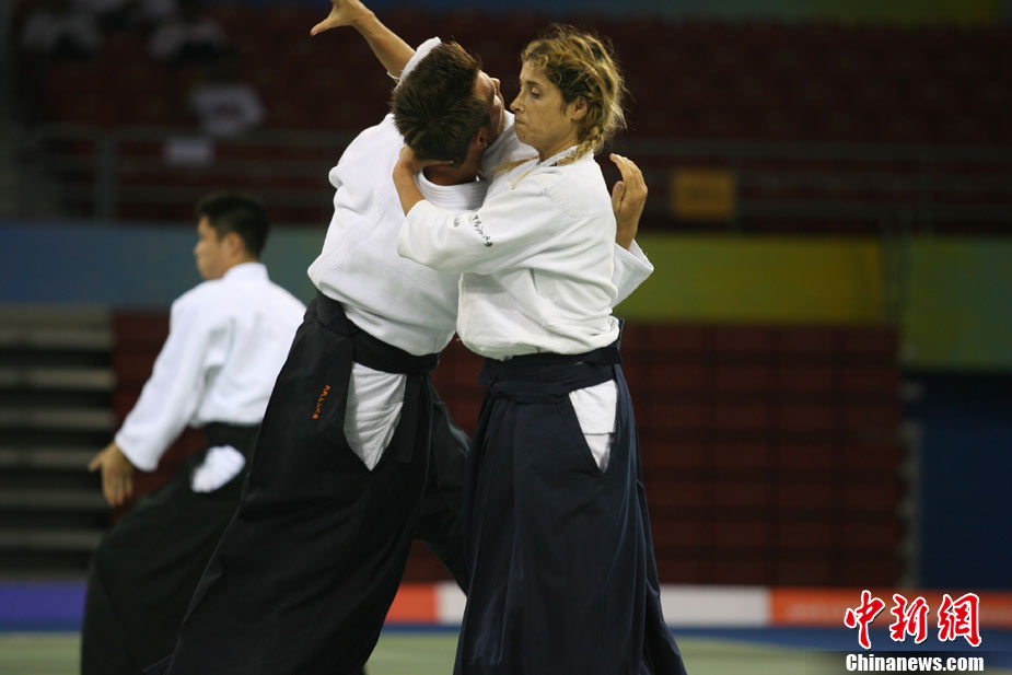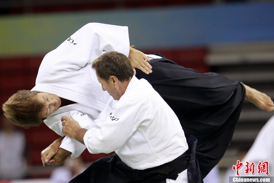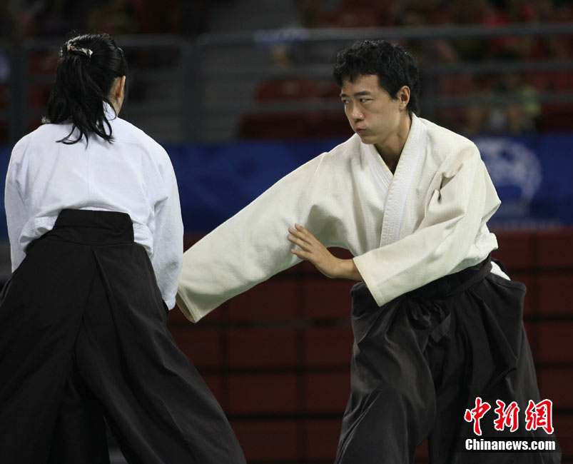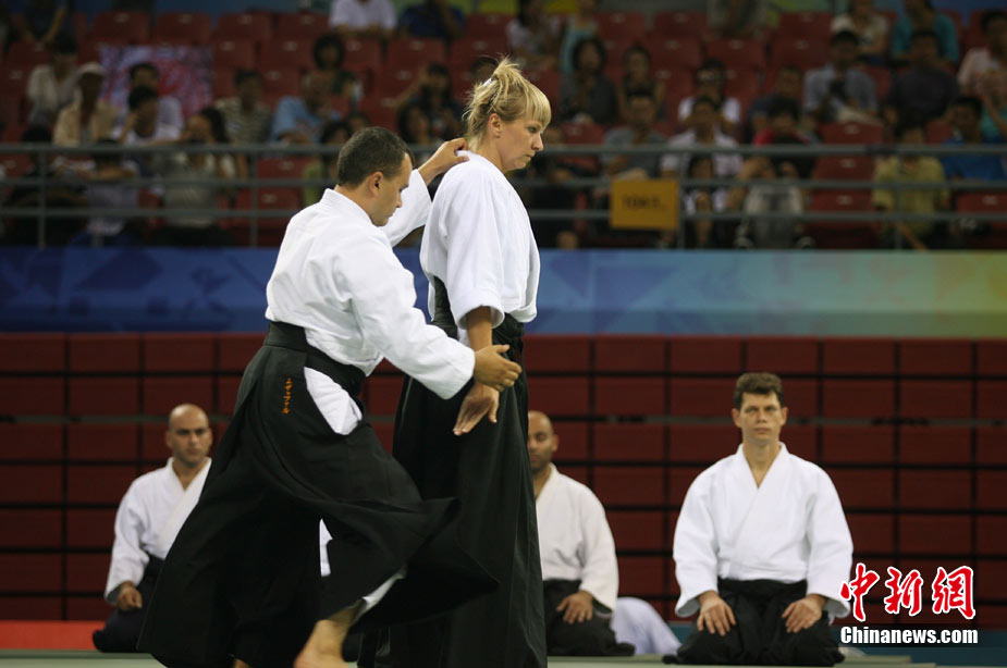 8月30日,一對選手在北京首屆武搏會合氣道賽場上對決,其動作與曼妙的舞姿竟有些神似。合氣道是一種根源于日本大東流合氣柔術的近代武術,合氣道不注重比賽的勝負,沒有跟別人較量的思想,而是跟他人一起鍛煉和修養(yǎng)自己,因此才會有鮮見的異性同場對決的場面出現(xiàn)。本次武搏會,合氣道將作為表演項目,無特別的規(guī)則,因此不能夠嚴格地定義勝利者或者失敗者。國際合氣道聯(lián)合會將組織高段教官來評判各項表演,表演賽分為基本技巧、高級技巧和復合技巧等三個單元。中新社發(fā) 蘇丹 攝