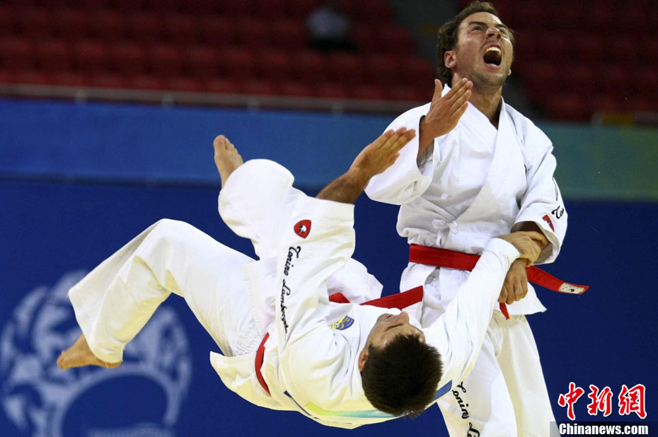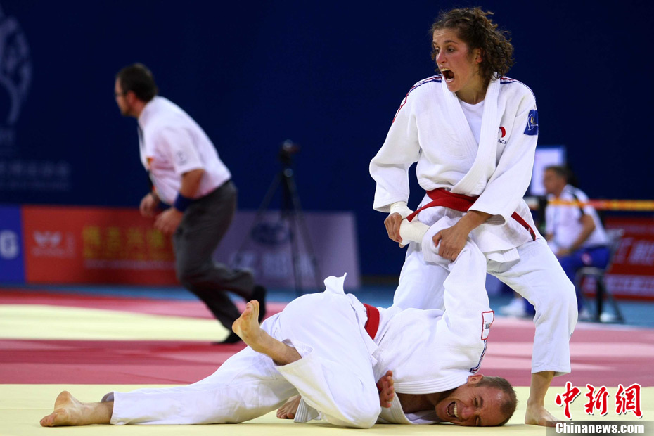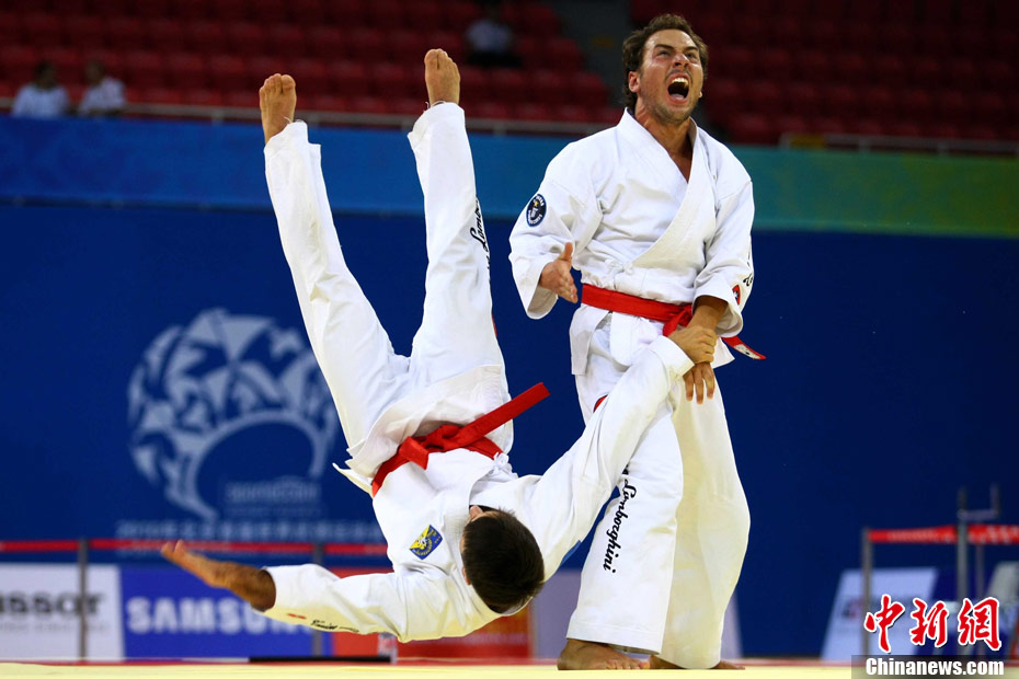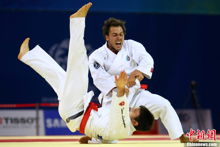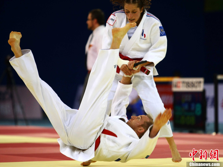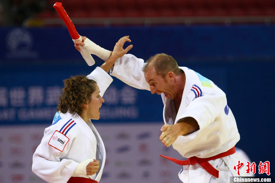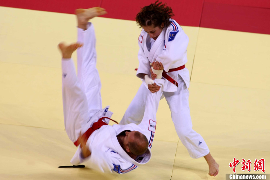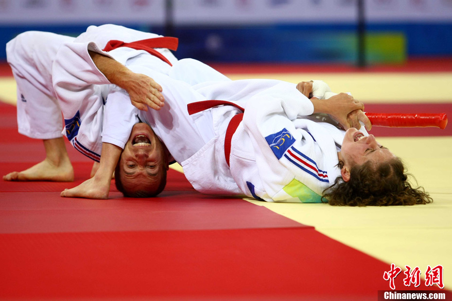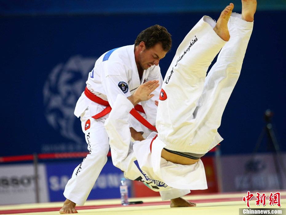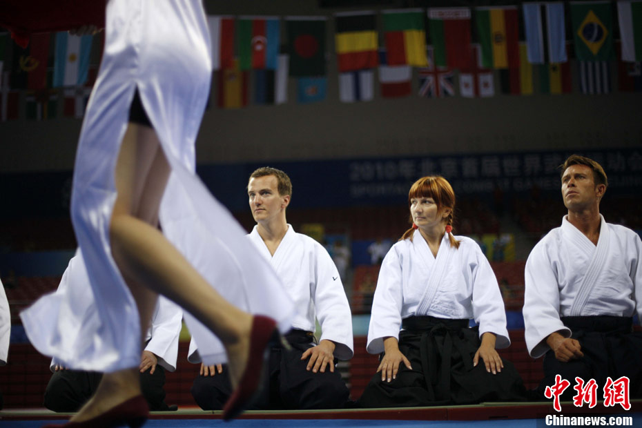 8月30日,一對選手在北京首屆武搏會合氣道賽場上對決,其動作與曼妙的舞姿竟有些神似。合氣道是一種根源于日本大東流合氣柔術的近代武術,合氣道不注重比賽的勝負,沒有跟別人較量的思想,而是跟他人一起鍛煉和修養(yǎng)自己,因此才會有鮮見的異性同場對決的場面出現(xiàn)。本次武搏會,合氣道將作為表演項目,無特別的規(guī)則,因此不能夠嚴格地定義勝利者或者失敗者。國際合氣道聯(lián)合會將組織高段教官來評判各項表演,表演賽分為基本技巧、高級技巧和復合技巧等三個單元。中新社發(fā) 蘇丹 攝