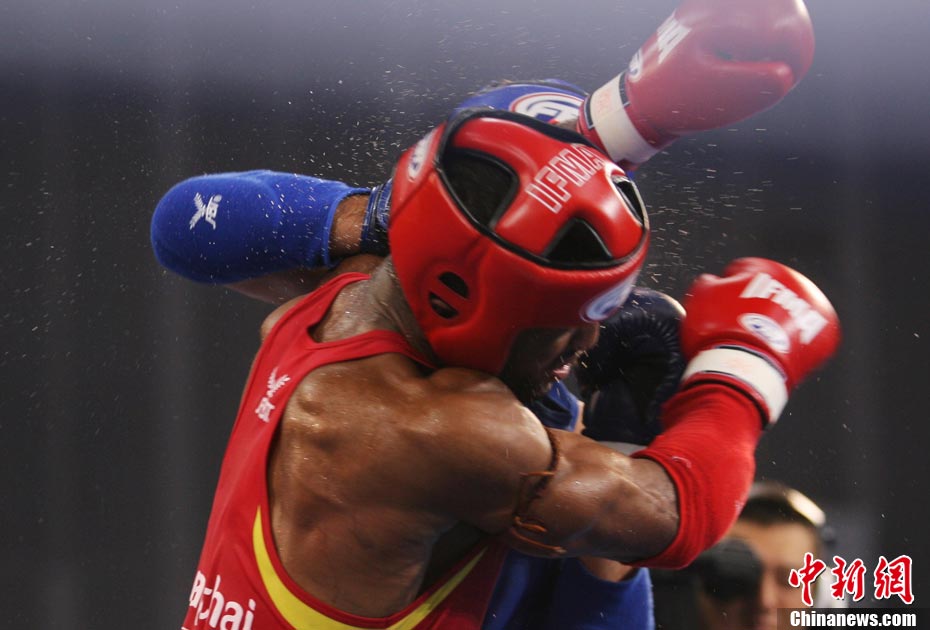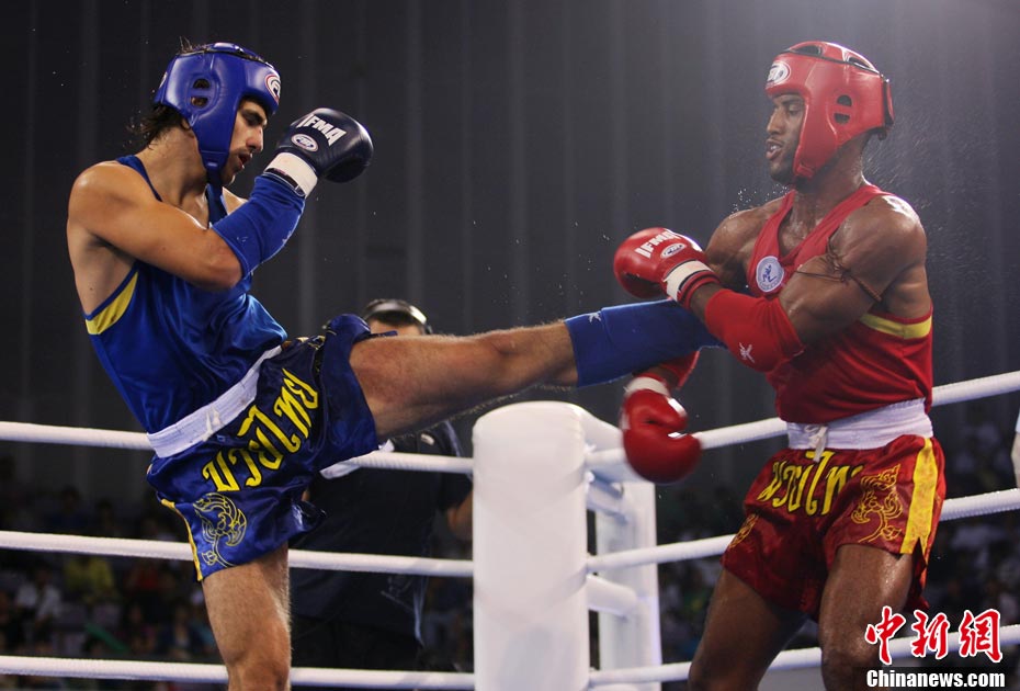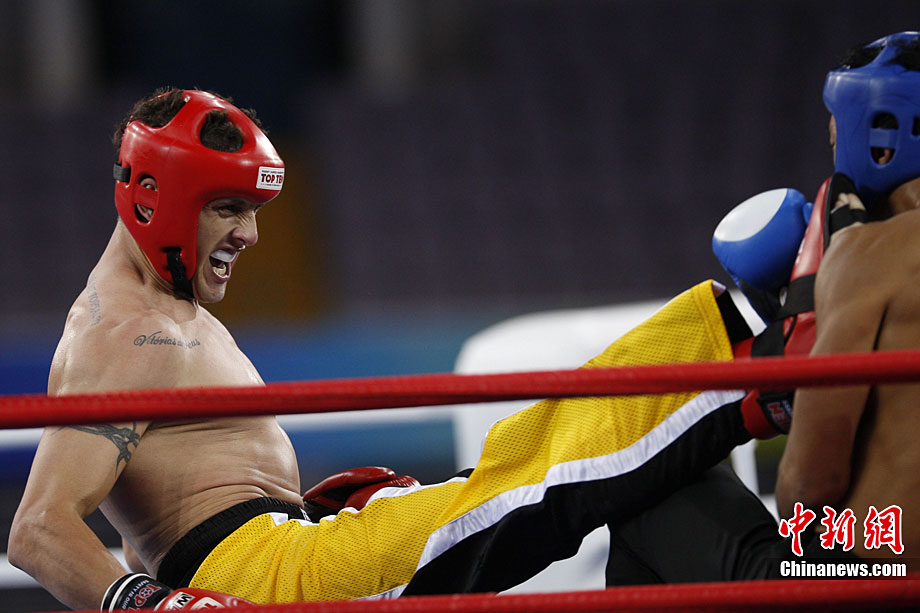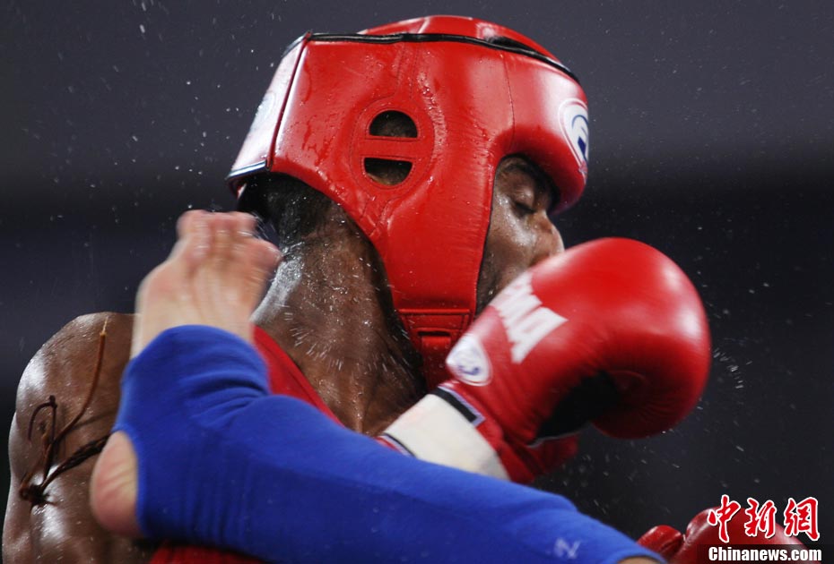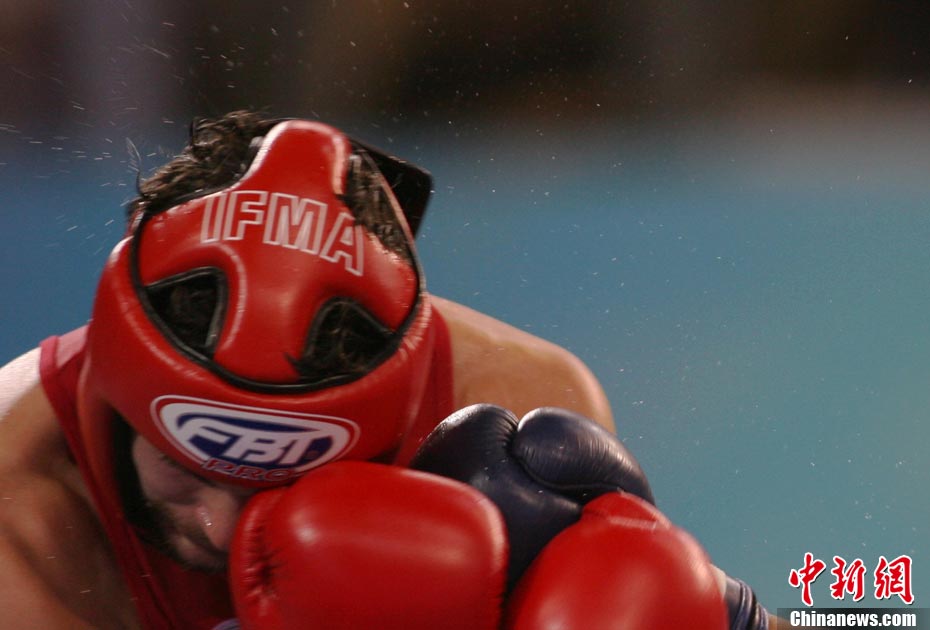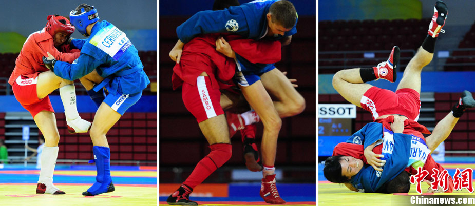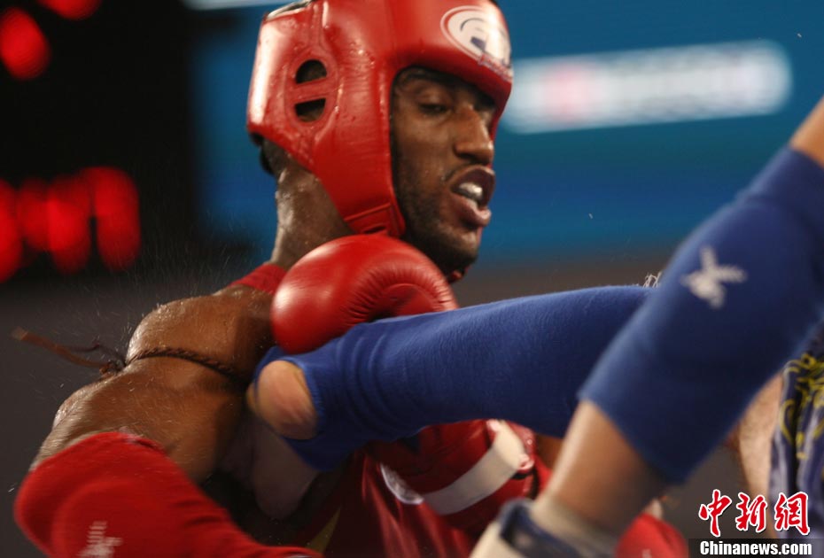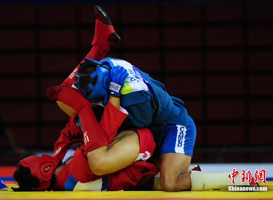 9月3日,2010年北京首屆世界武搏運動會劍道比賽在北京科技大學體育館開賽,當天舉行男、女個人賽預賽和決賽及女子特殊邀請賽預賽和決賽。圖為在男子個人邀請賽中,日本選手昭司寺本(Shoji TERAMOTO)(右)和巴西選手奧納卡(Ernesto Eisaku ONAKA)在比賽中。中新社記者 盛佳鵬 攝
