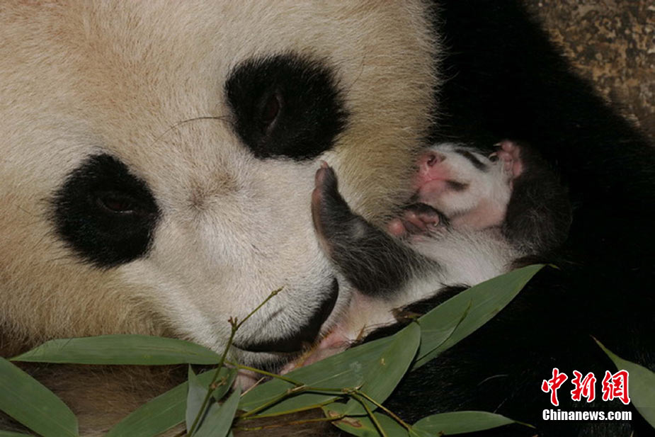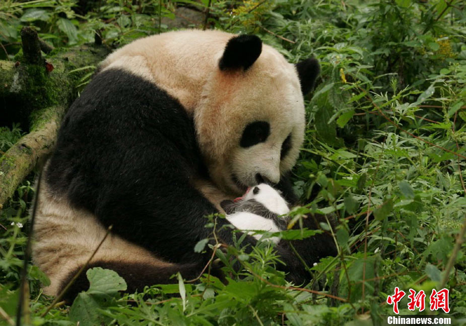 9月4日從臥龍中國(guó)保護(hù)大熊貓研究中心獲悉,全球首只在野化培訓(xùn)基地誕生的大熊貓寶寶----“草草”的幼仔已滿月。在8月3日降生于臥龍“核桃坪”野化培訓(xùn)基地后的一個(gè)月里,科研人員按預(yù)先計(jì)劃順利開(kāi)展了相關(guān)研究工作,讓“草草”帶著寶寶先在一個(gè)條件相對(duì)簡(jiǎn)單的環(huán)境中生活,目前,幼仔生長(zhǎng)狀況良好,從出生時(shí)的205克增長(zhǎng)到了1235克,身體健康,活力強(qiáng)。中新社發(fā) 曾昌霞 攝