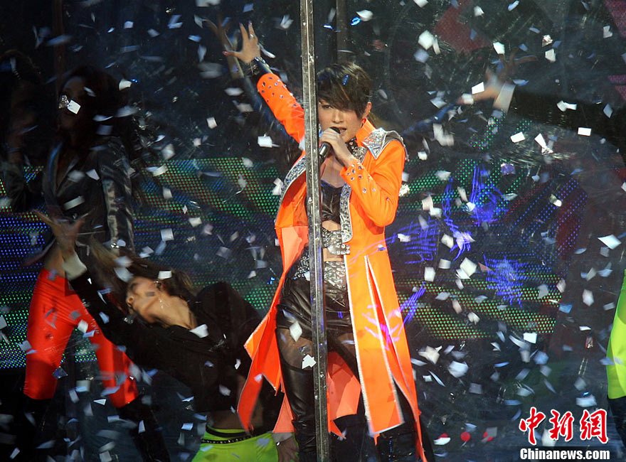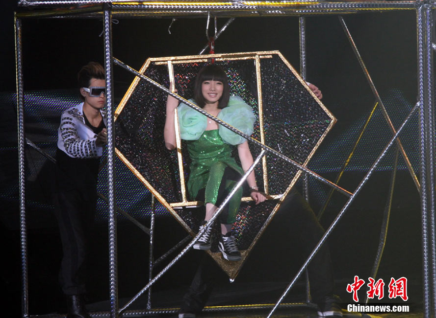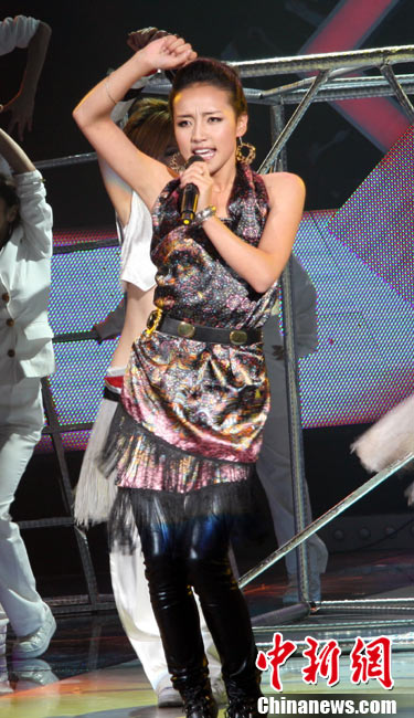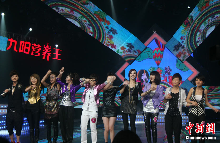 9月5日凌晨,拿下今年國內(nèi)選秀節(jié)目首張“準(zhǔn)生證”的“花兒朵朵”在長沙落下帷幕。經(jīng)過長達(dá)五個(gè)多小時(shí)的馬拉松式的比賽后,廣西女孩莫龍丹(左)以絕對優(yōu)勢奪冠,蔡婷玉(中)和李慧分獲亞、季軍。中新社記者 鄧霞 攝