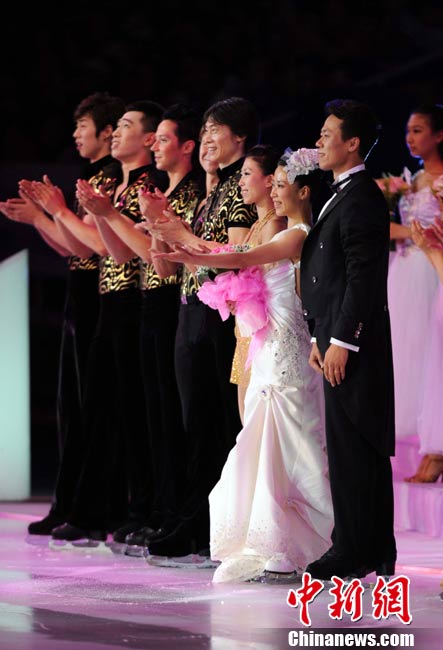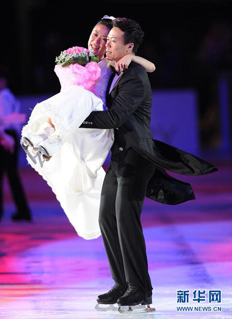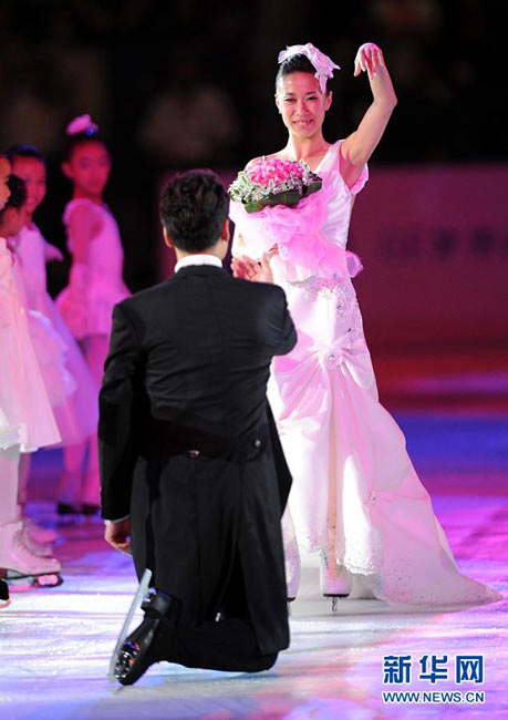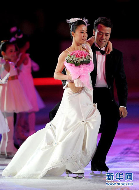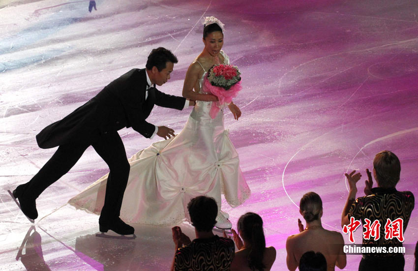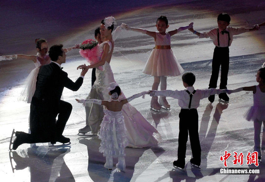 9月4日,申雪/趙宏博在首都體育館舉辦冰上婚典,并邀請(qǐng)普魯申科、亞古丁、約翰尼·威爾、淺田真央、羅切特等世界花滑巨星,聯(lián)袂世界著名編舞大師瑞內(nèi)·羅卡、歌星張靚穎、小提琴家呂思清等,為中國觀眾奉獻(xiàn)上一場(chǎng)賞心悅目、浪漫唯美的視聽盛宴。