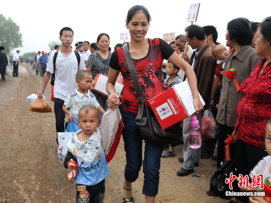 9月4日,河南省淅川縣盛灣鎮(zhèn)河扒村363戶1432名移民別離故土,奔赴新的家園。至此,河南省南水北調(diào)丹江口庫(kù)區(qū)首批移民集中搬遷安置工作圓滿完成。6月17日至9月4日,河南省淅川縣南水北調(diào)丹江口庫(kù)區(qū)首批60886名移民在78天時(shí)間全部搬遷完畢,整個(gè)過(guò)程無(wú)一例安全責(zé)任事故,無(wú)一例移民人身傷亡事故,實(shí)現(xiàn)了平安、有序、和諧搬遷。中新社發(fā) 淅川宣 攝