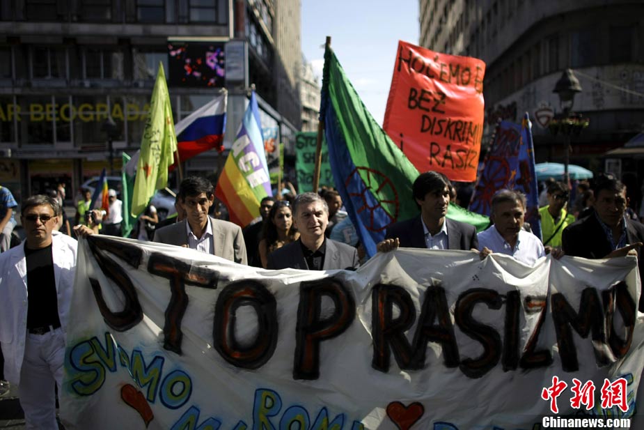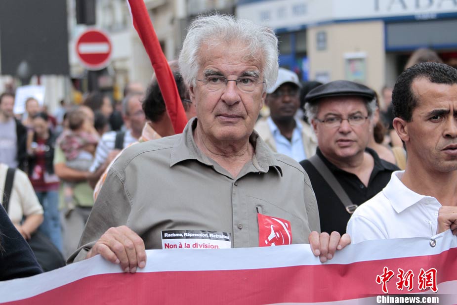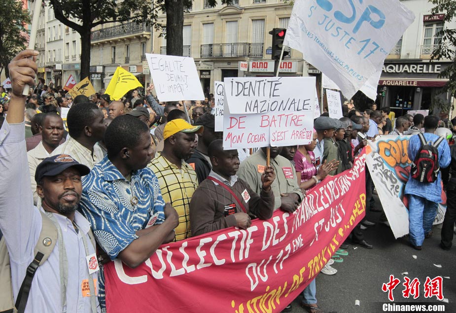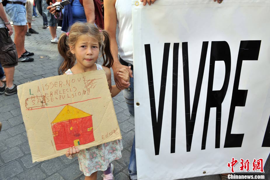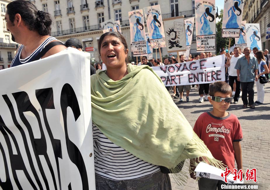 法國(guó)全國(guó)各地4日有數(shù)以萬(wàn)計(jì)的群眾上街示威,抗議政府最近采取新政策,強(qiáng)行驅(qū)逐吉卜賽人出境。歐洲其它城市包括貝爾格萊德和羅馬,也有群眾游行聲援吉卜賽人。圖為在法國(guó)南特,民眾示威抗議政府強(qiáng)行驅(qū)逐吉普賽人。
