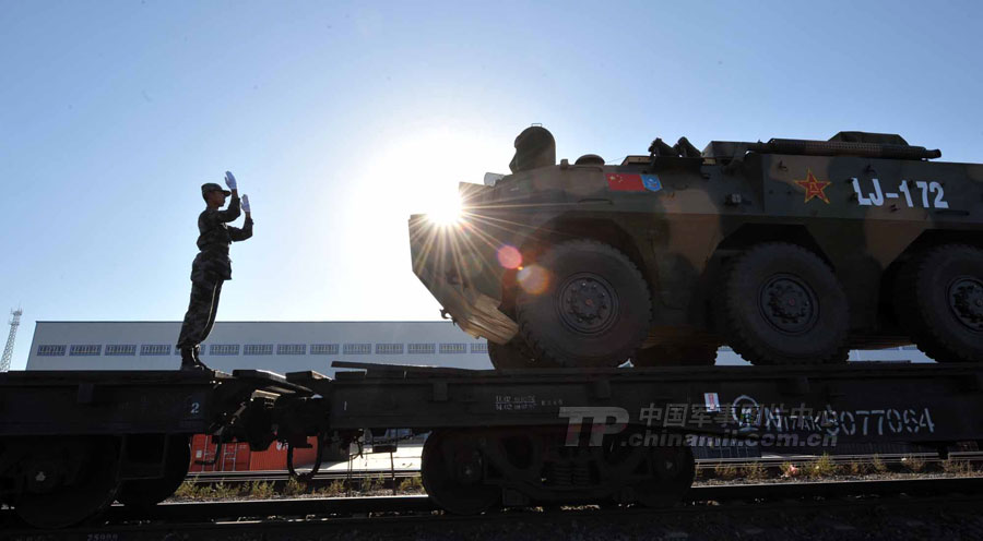 隨著軍列一聲長鳴,中方陸軍戰(zhàn)斗群第一梯隊(duì)9月5日晚于新疆阿拉山口駛出國門,進(jìn)入哈薩克斯坦境內(nèi),參加“和平使命-2010”聯(lián)合軍演。這是中國軍隊(duì)第二次跨境遠(yuǎn)程投送兵力參加上合聯(lián)演。