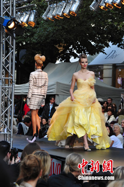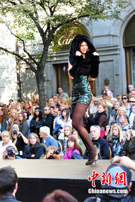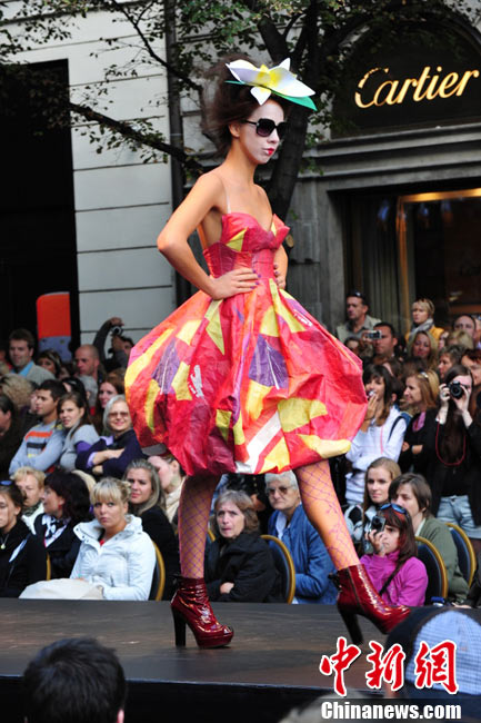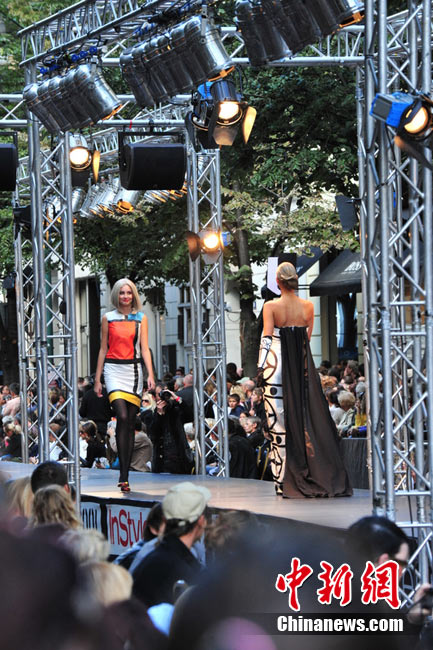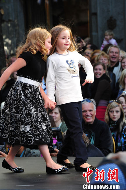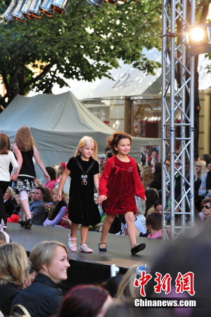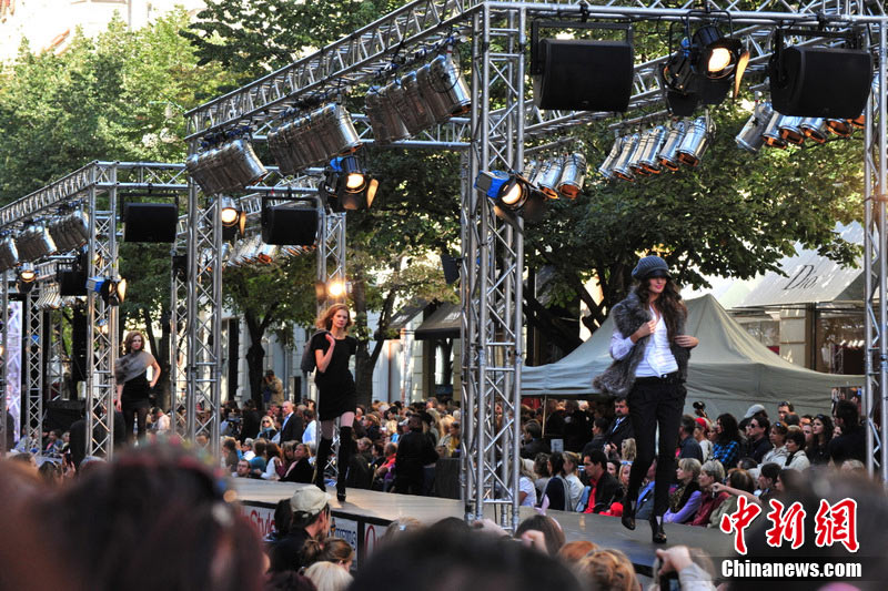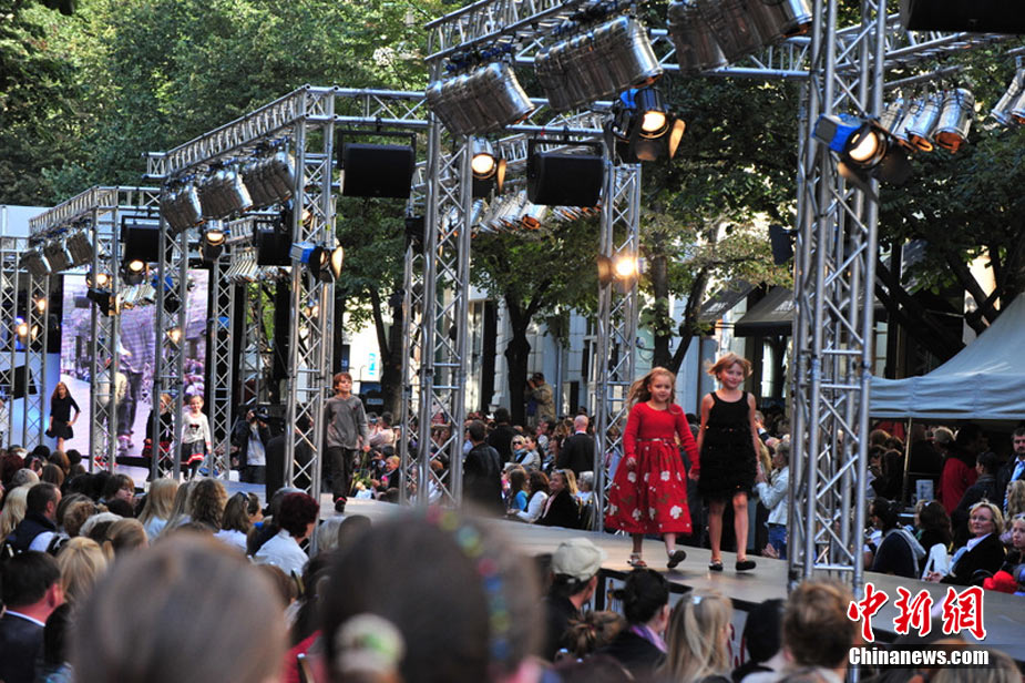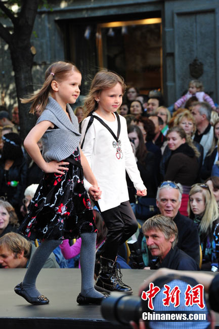捷克首都布拉格4日和5日接連兩天在市中心最繁華的商業(yè)街巴黎大街封閉車輛交通,在街道中間搭起長(zhǎng)臺(tái),向公眾表演時(shí)裝秀。其中一組兒童秀引起觀眾轟動(dòng)。黃頻 攝