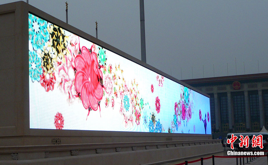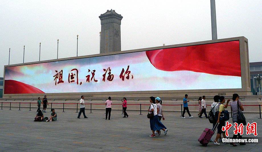 9月6日傍晚,北京天安門廣場人民英雄紀(jì)念碑北側(cè),兩塊新近亮相大理石基座的LED巨屏開始調(diào)試,巨屏將以新穎靚麗的視頻畫面迎接國慶節(jié)的到來。據(jù)悉,原本為臨時設(shè)施的這兩塊國內(nèi)最大廣場顯示屏,現(xiàn)改造為固定設(shè)施,成為天安門廣場的重要景觀,此次更換新屏后,像素間距將從16毫米壓縮至12毫米,畫面更加清晰逼真。玉龍 攝 圖片來源:cnsphoto
