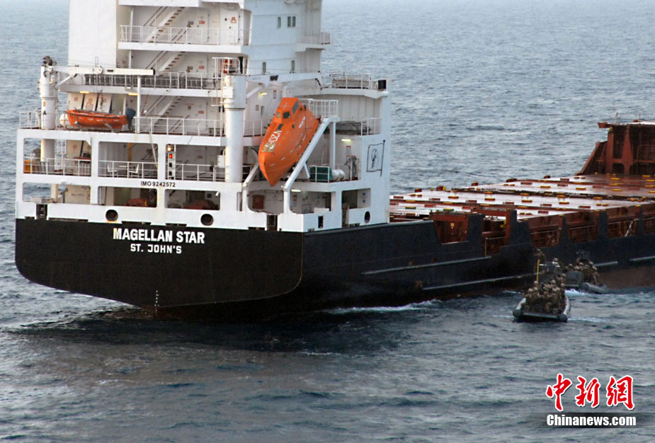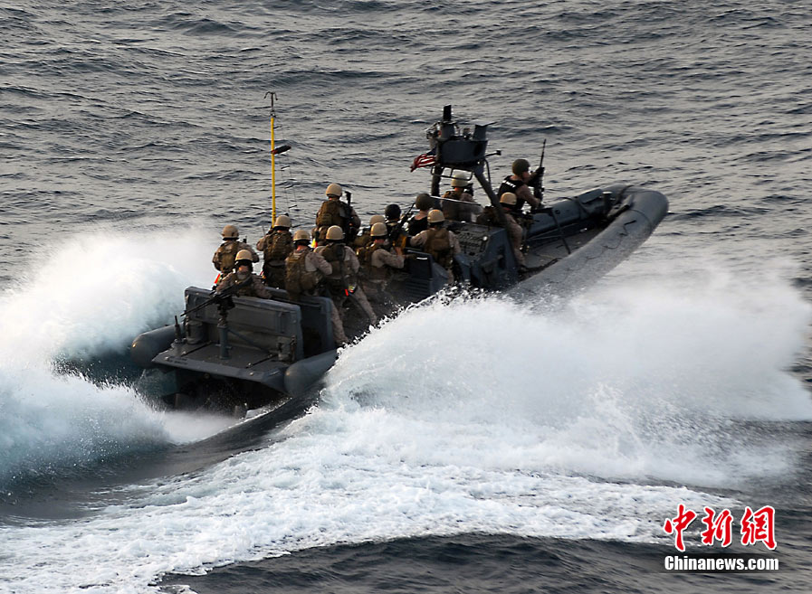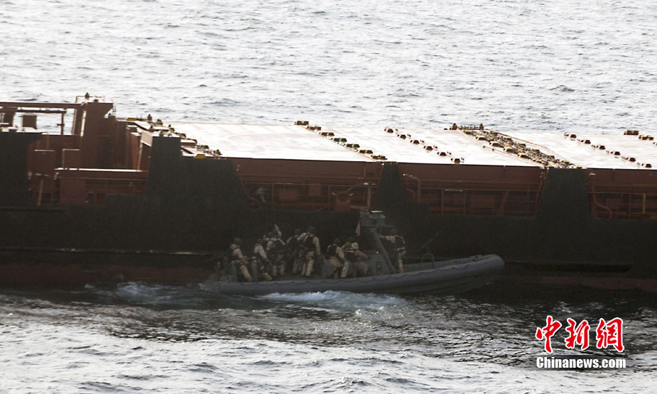 據稱24名美陸戰(zhàn)隊官兵乘橡皮快艇駛向遭劫持的貨輪,并悄悄通過便攜式旋梯登上貨輪。有意思的是,美軍采用的登船戰(zhàn)術和海盜們劫持貨輪的手段如出一轍。