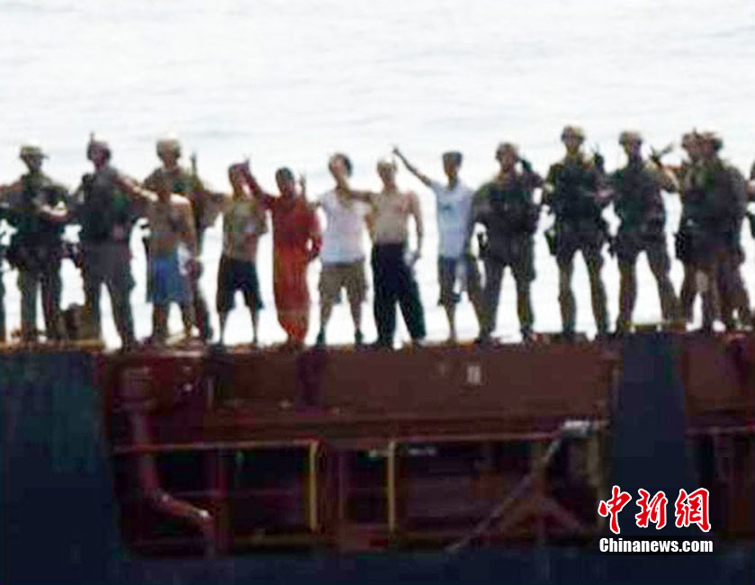 美國海軍陸戰(zhàn)隊官兵9日成功從索馬里海盜手中奪回了一天前遭劫持的德國貨輪。美方稱,在整個解救過程中,美軍未放一槍一彈,9名海盜束手就擒,11名船員安然無恙。